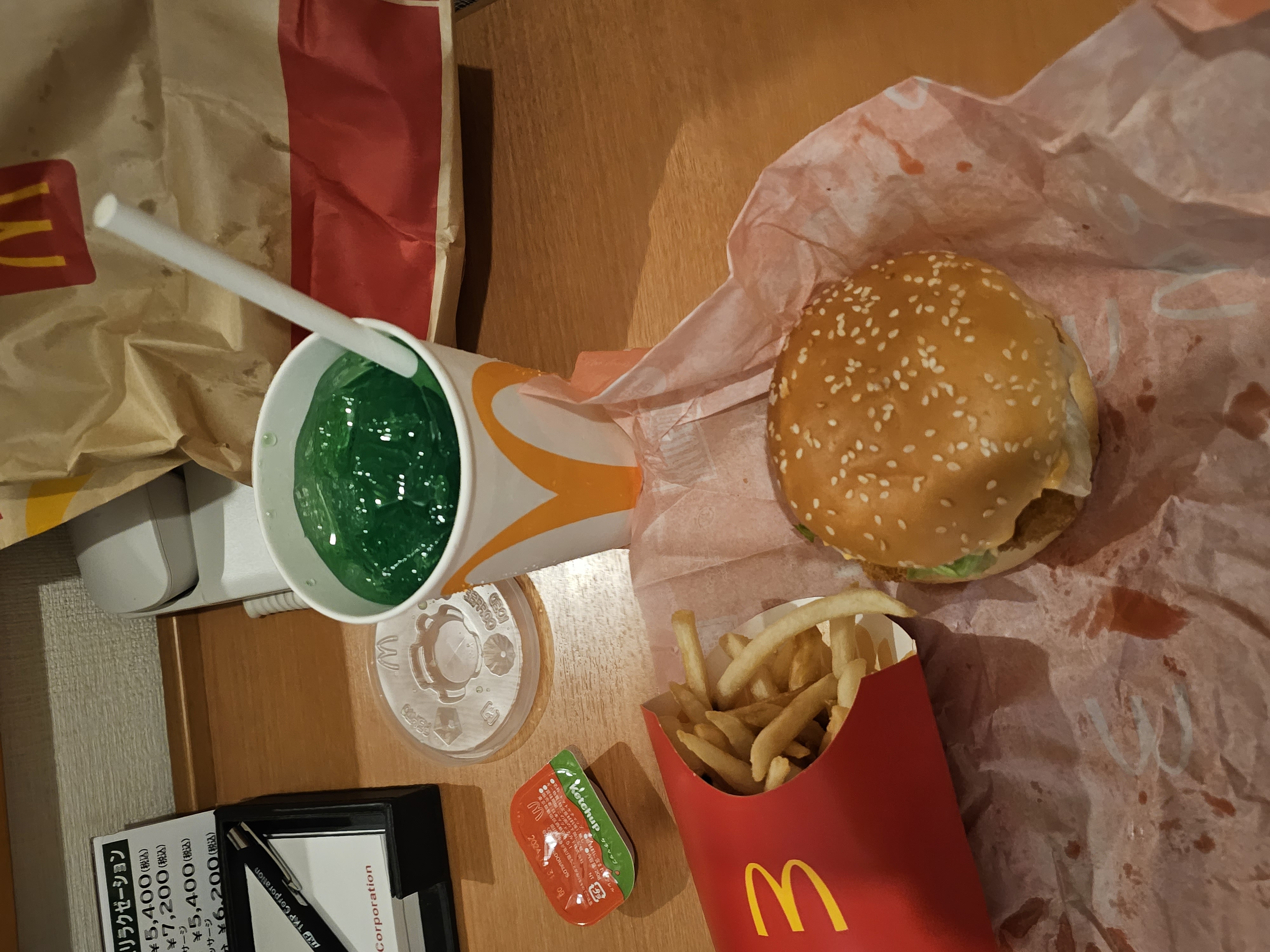 일본 케첩은 네모난 용기에 들어있고요 음료는 메론소다로 변경