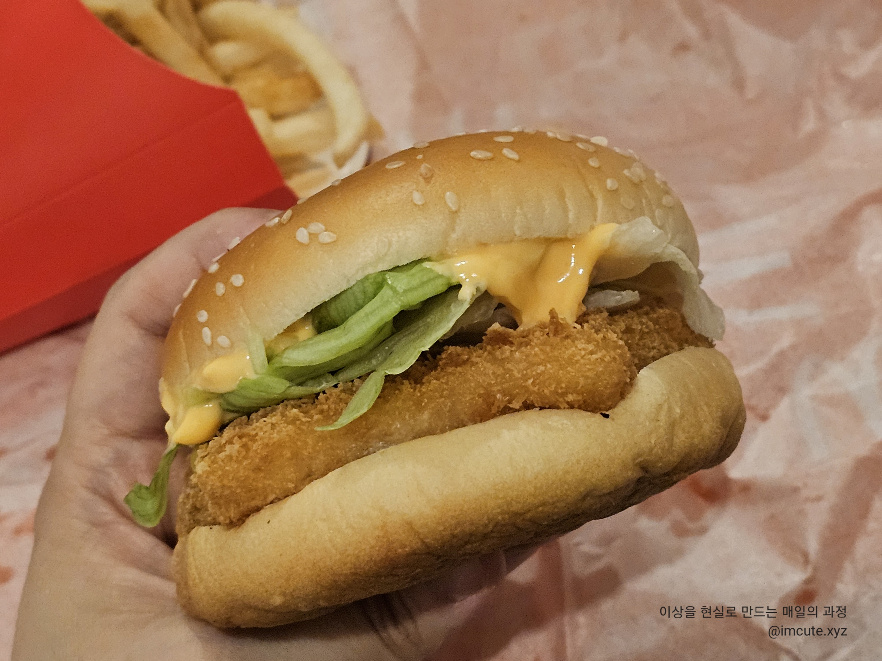 빵이 부드럽고 맛은 한국에서 먹는 슈슈버거같은 맛