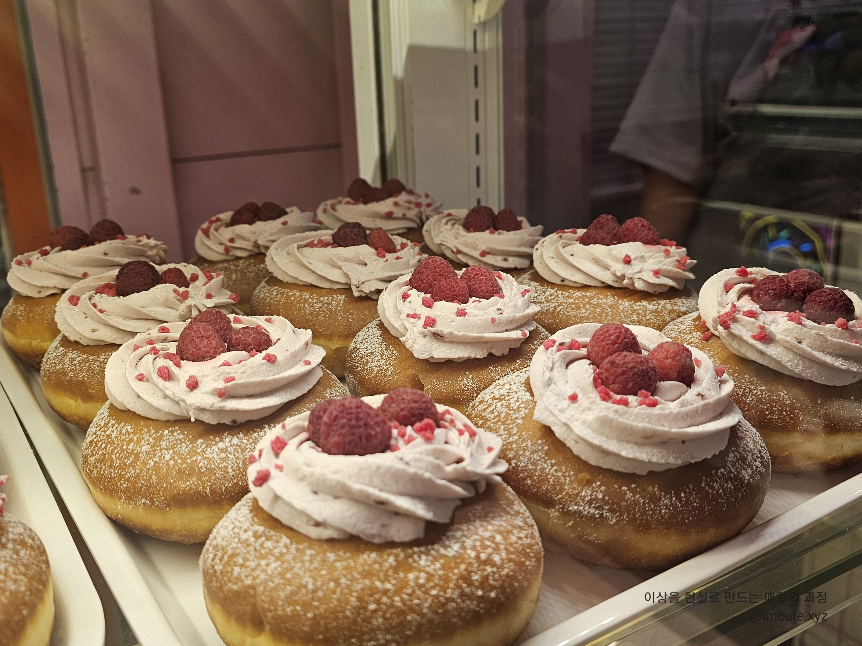 라즈베리 크림이라 색도 살짝 붉죠? 그 위에 진짜 베리가 얹어져 있어서 실물 비주얼 깡패