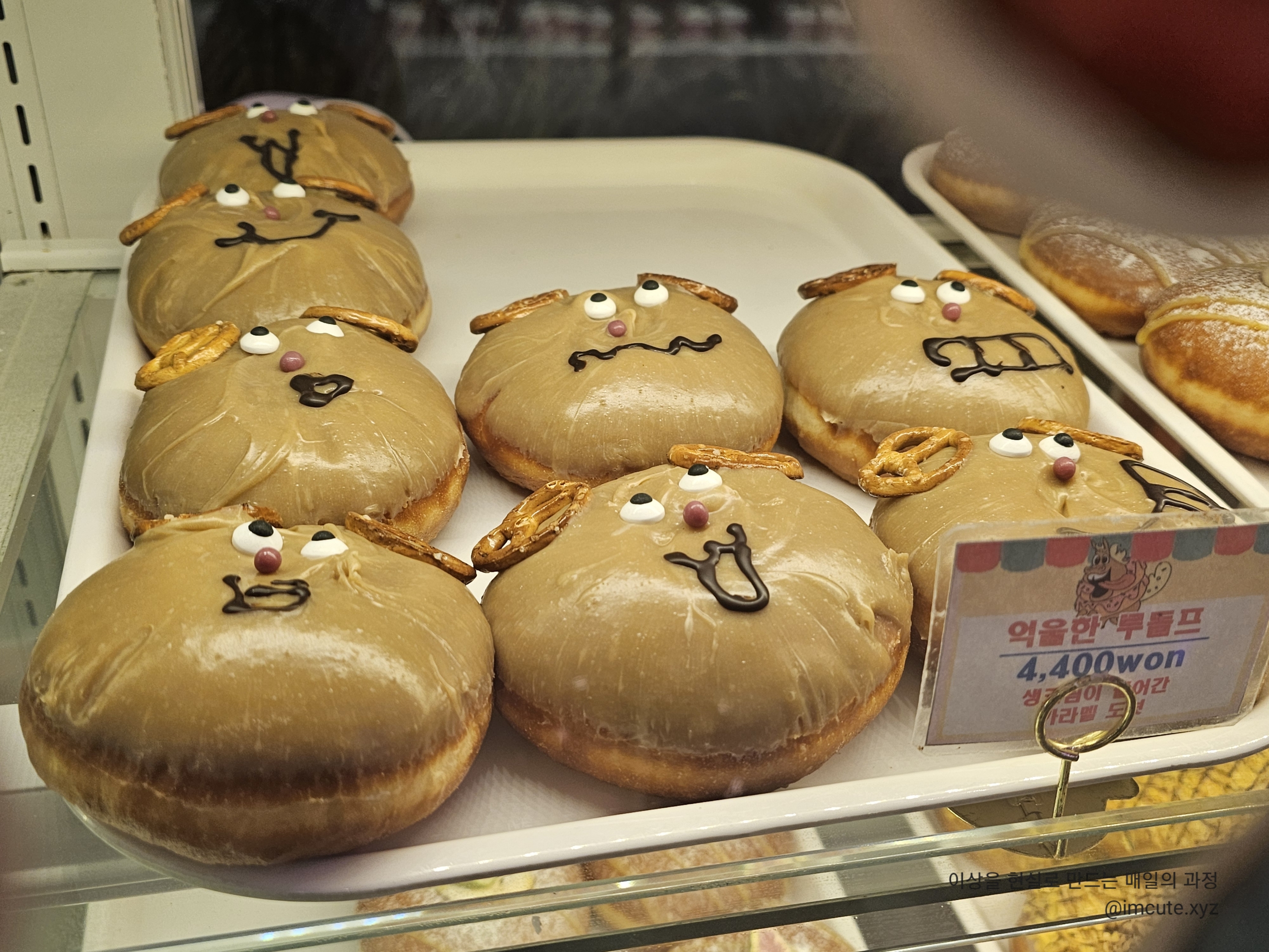 말똥도넛이라는 매장 이름처럼 정말 말의 똥을 닮은 장식이 있는 도넛을 팔고 있어요.