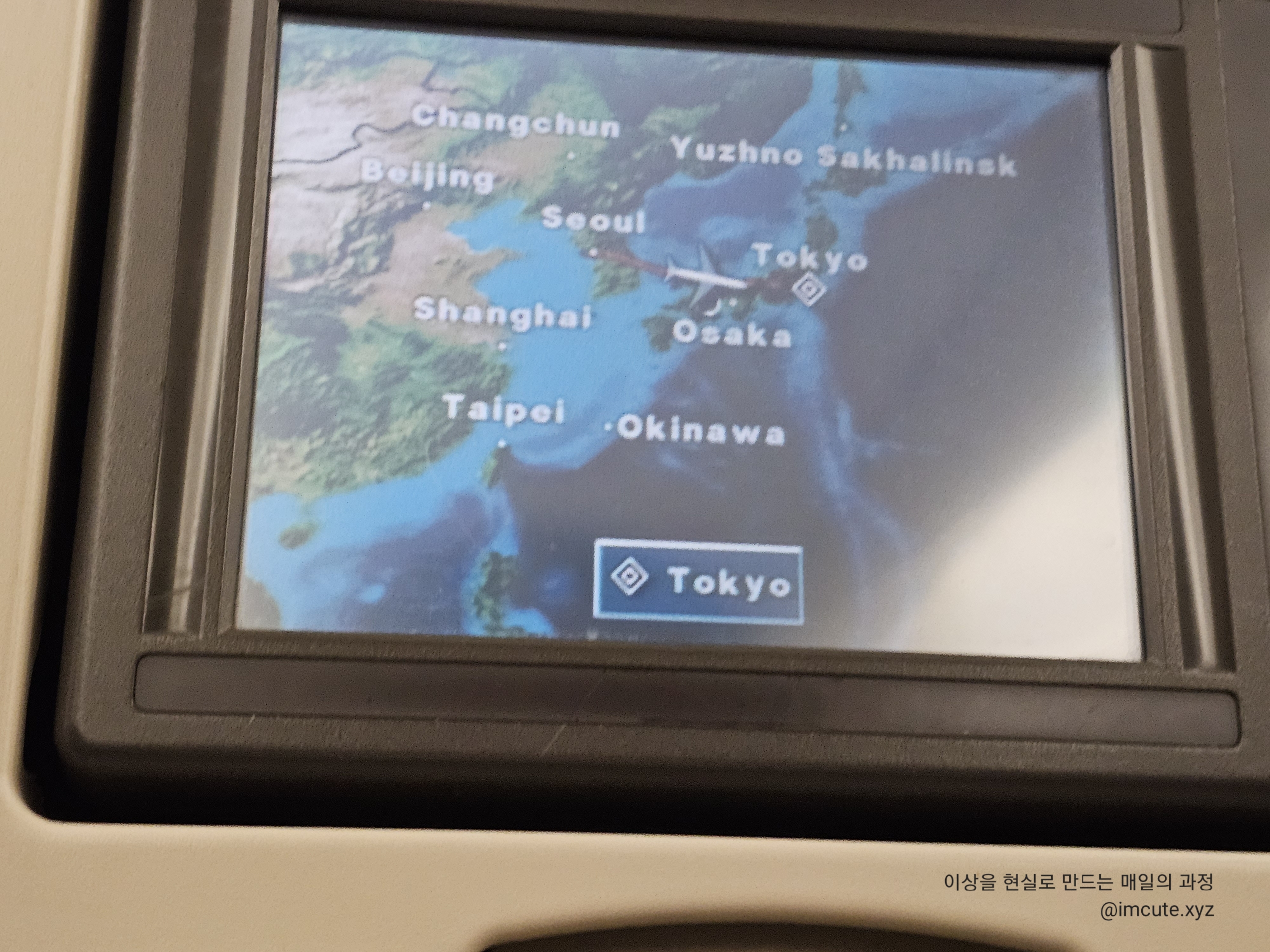 한국에서 일본에 어느 정도 들어온 다음에는 비행기가 일본 본토 위를 걸치듯이 날아서 가는 게 신기하더라고요