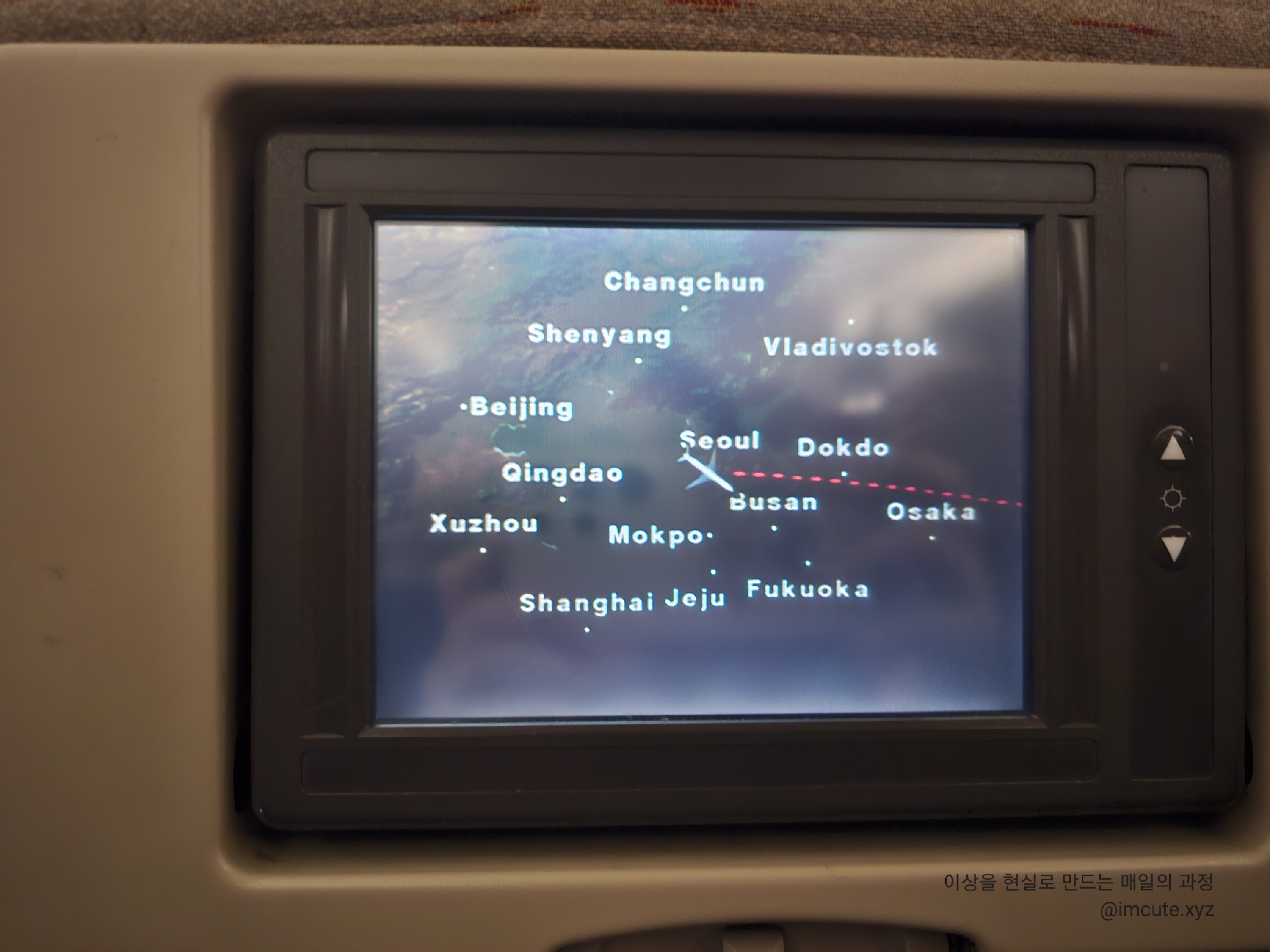 비행 시간은 지루하지만 이렇게 모니터로 내가 어딨는지