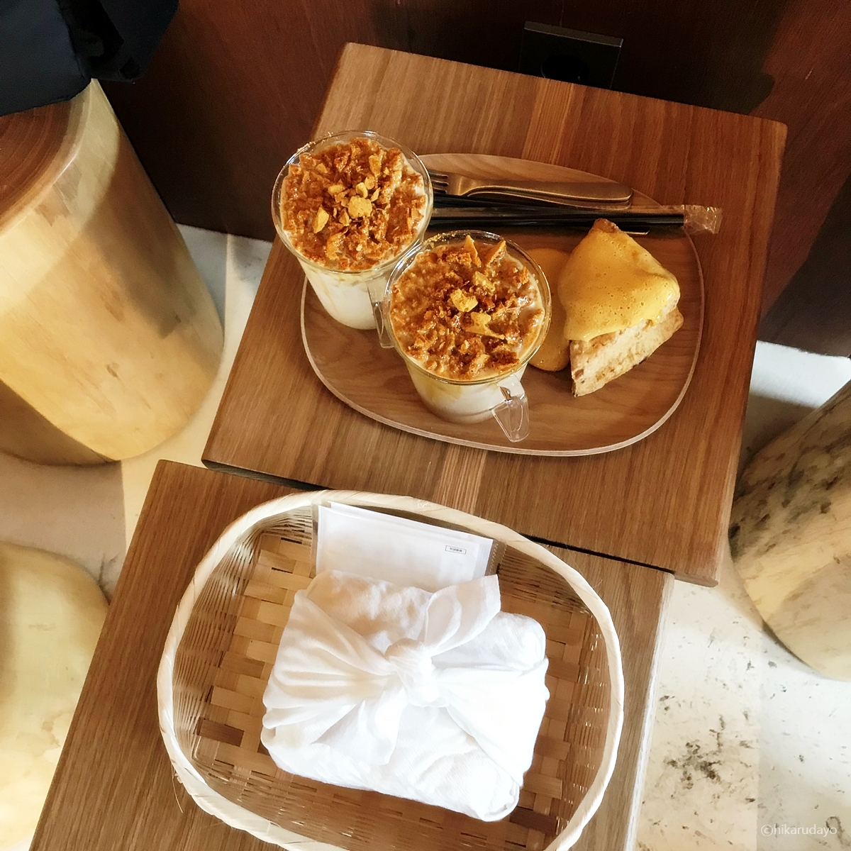 이렇게 나무테이블에 나무 문양이 되어있는 트레이를 주셨네요. 컵도 얼마나 이쁘게 생겼는지 집에도 이런 컵이 있었으면 얼마나 좋을까? 하는 마음까지 솟구치더라고요.