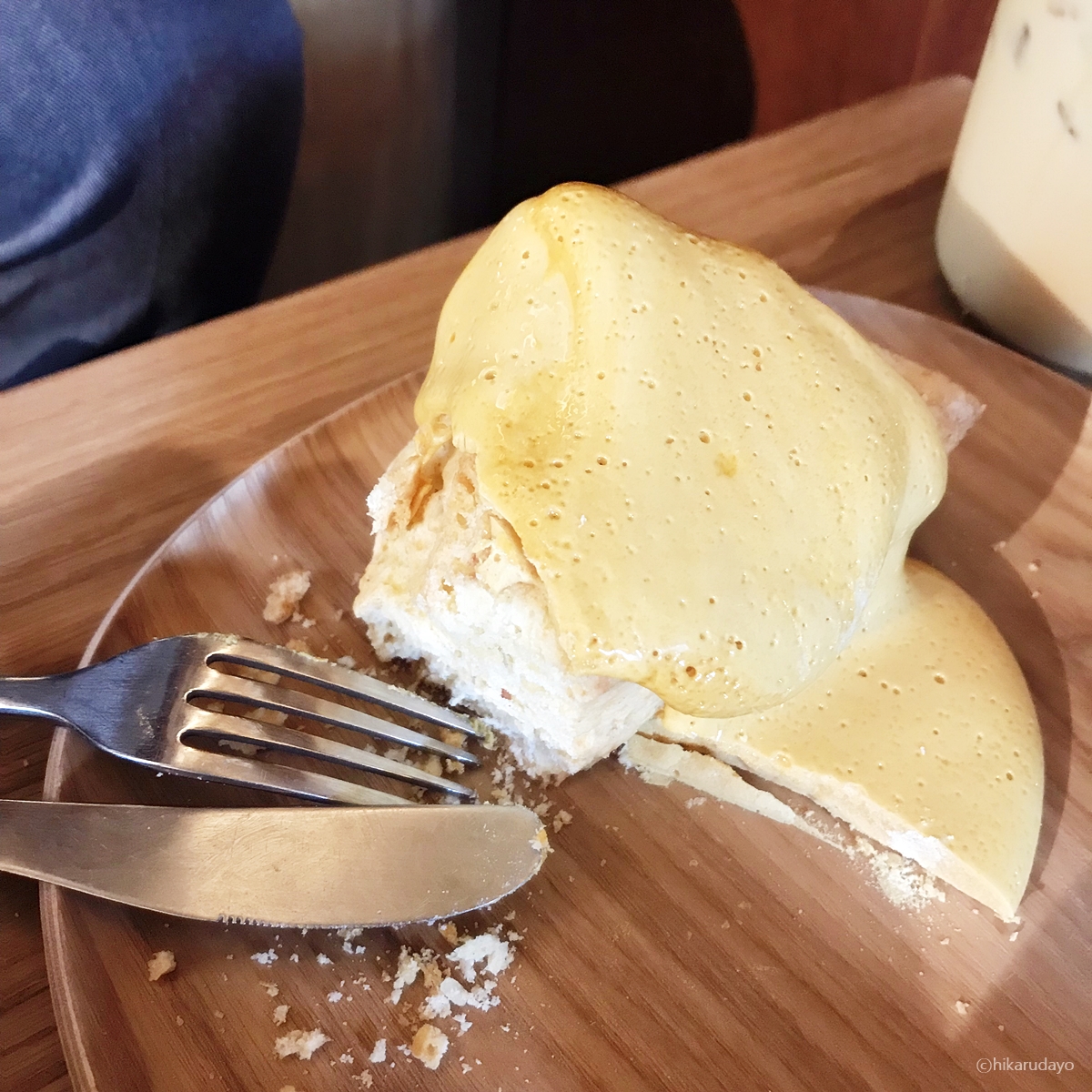 사실 바깥만 아니었으면 칼로 잘라먹지 않고 이빨으로 와그작 와그작 뜯어 먹지 않았을까 합니다. 잘 잘리지 않으니까요. 비주얼로 보자면 달고나가 폭탄처럼 스콘위에 투척되어 있는 어마무시한 모양새.