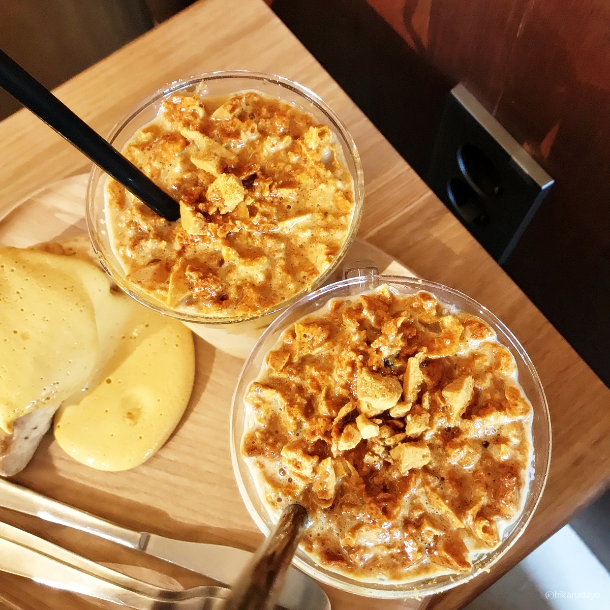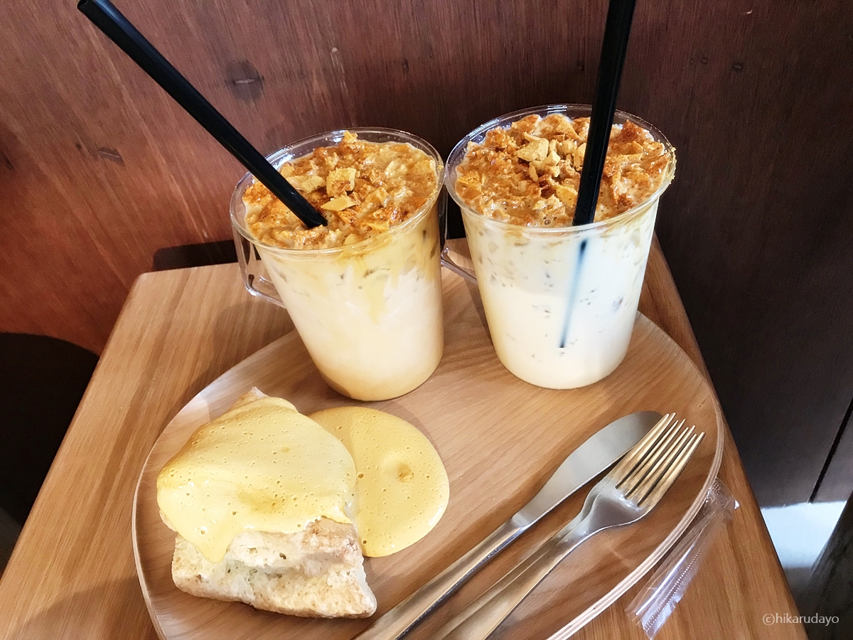 달고나가 잔뜩 들어간 밀크티와 라떼.