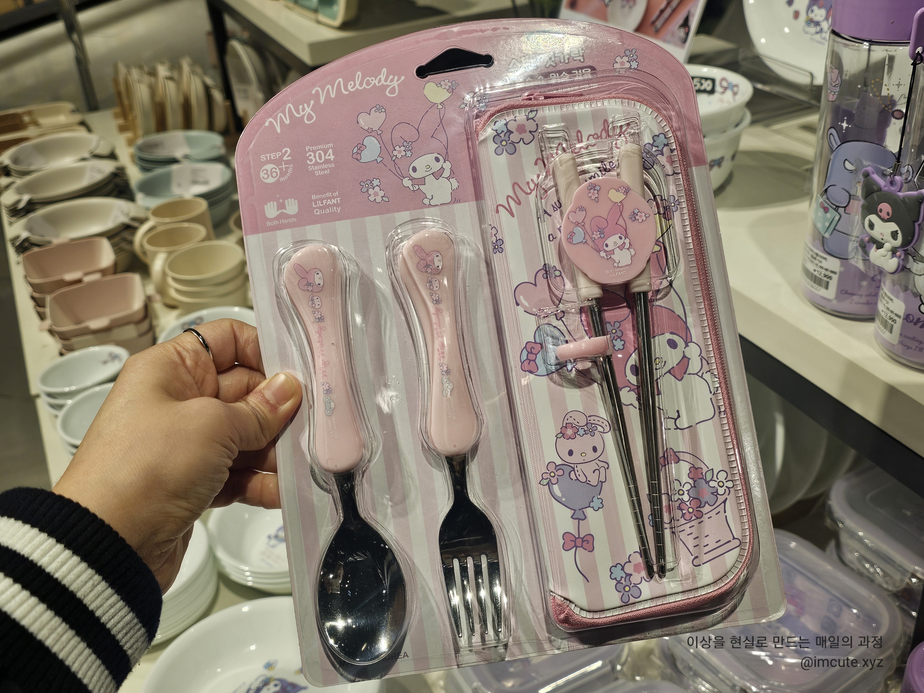 산리오 마이멜로디 수저세트! 젓가락질 잘 못하는 아이들을 위한 교정젓가락 스타일로 나와있더라구요