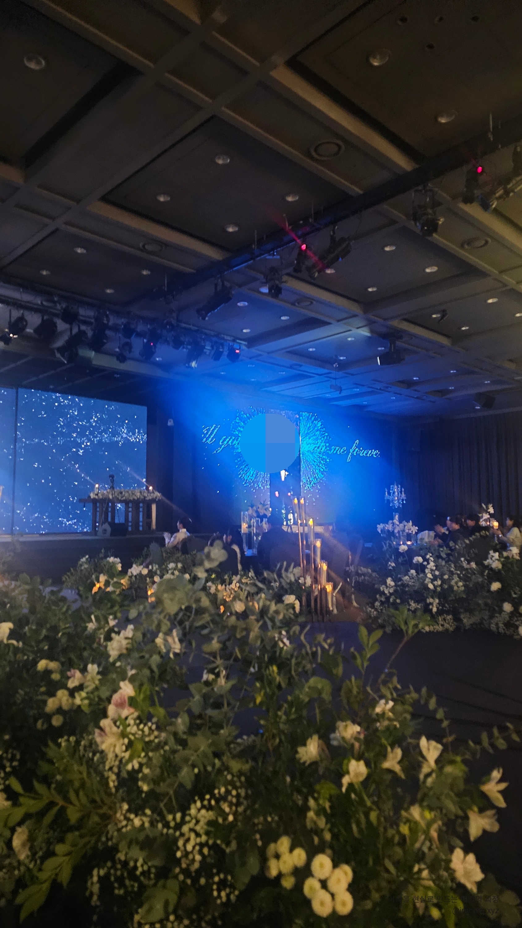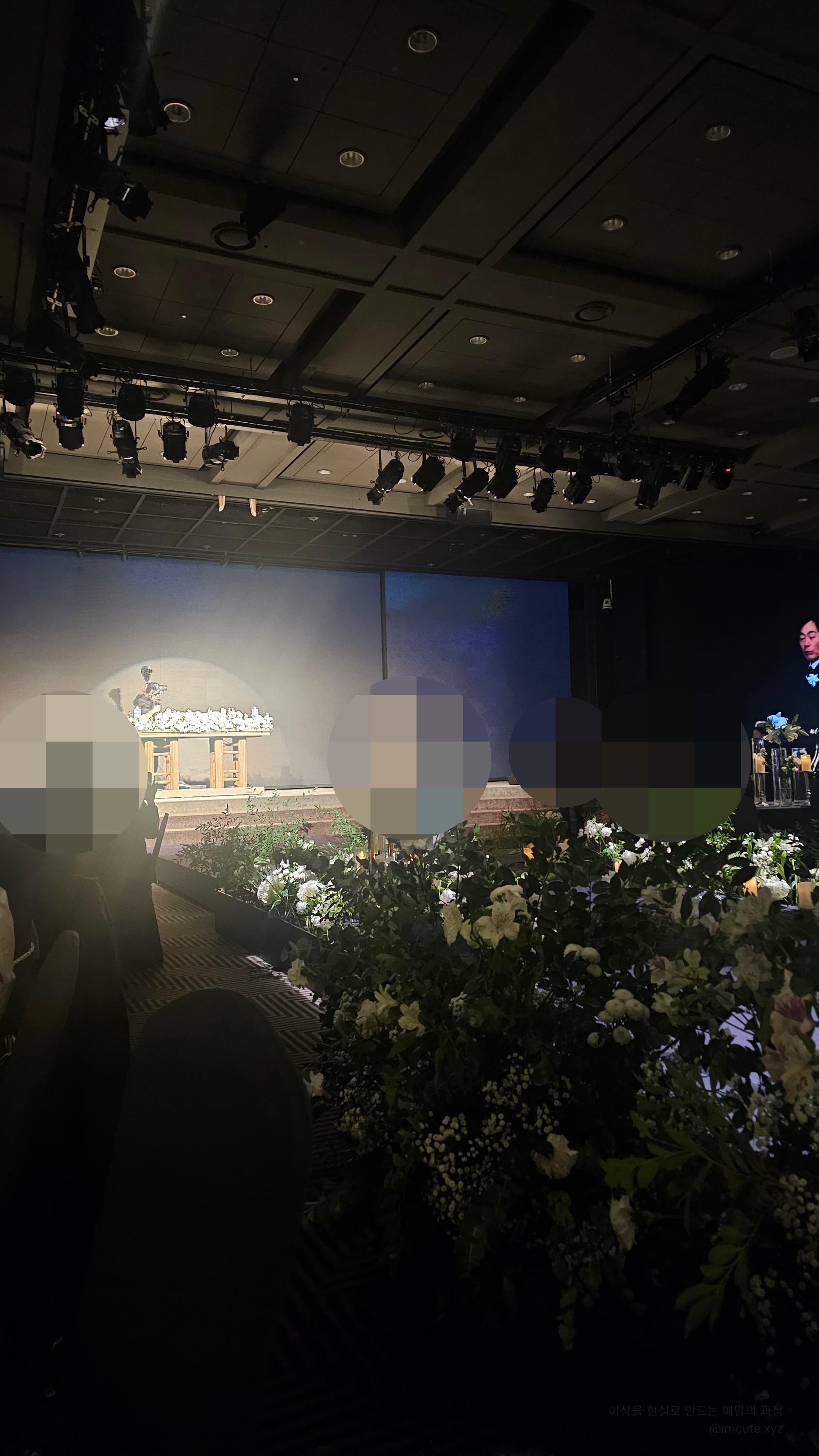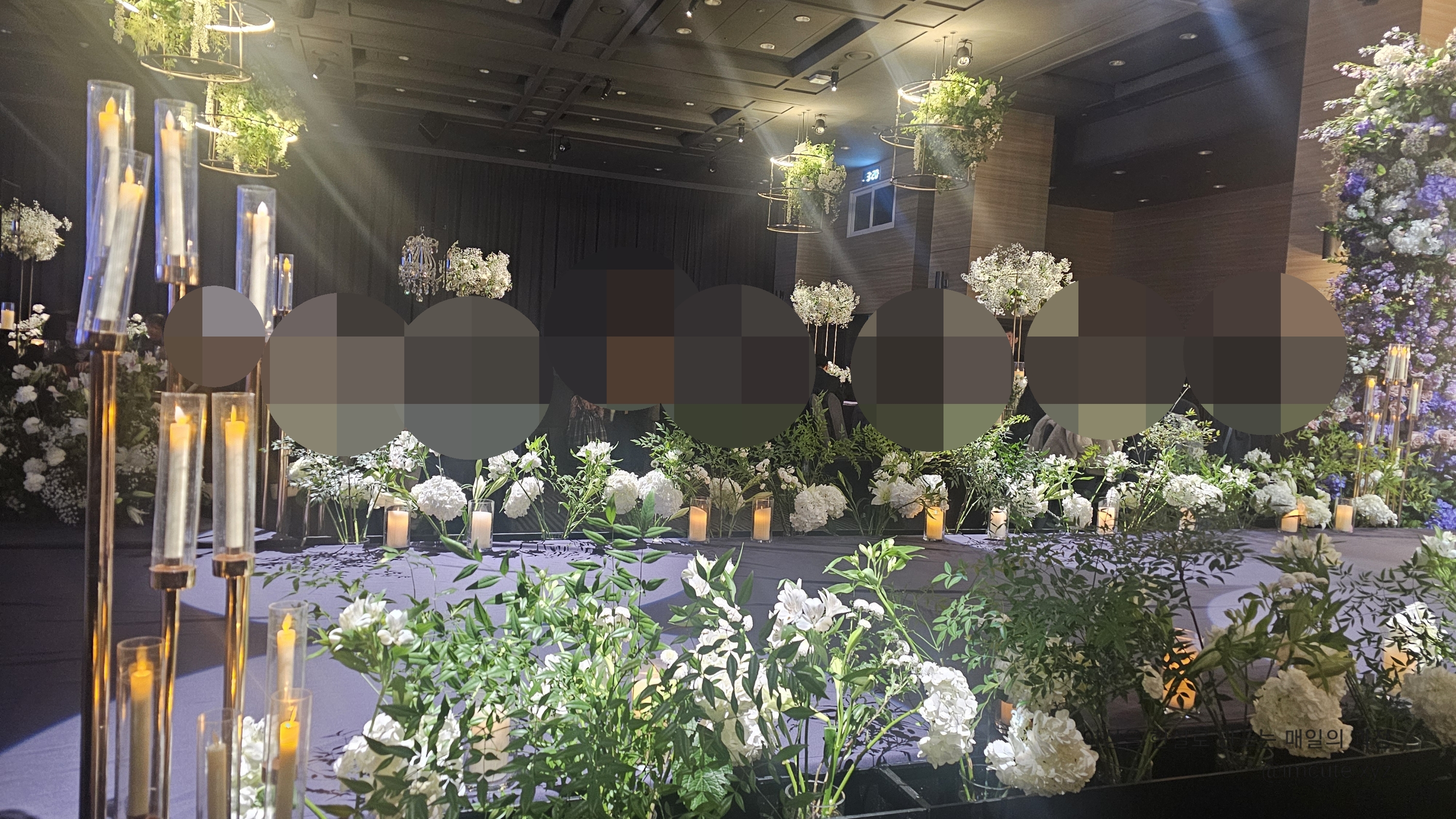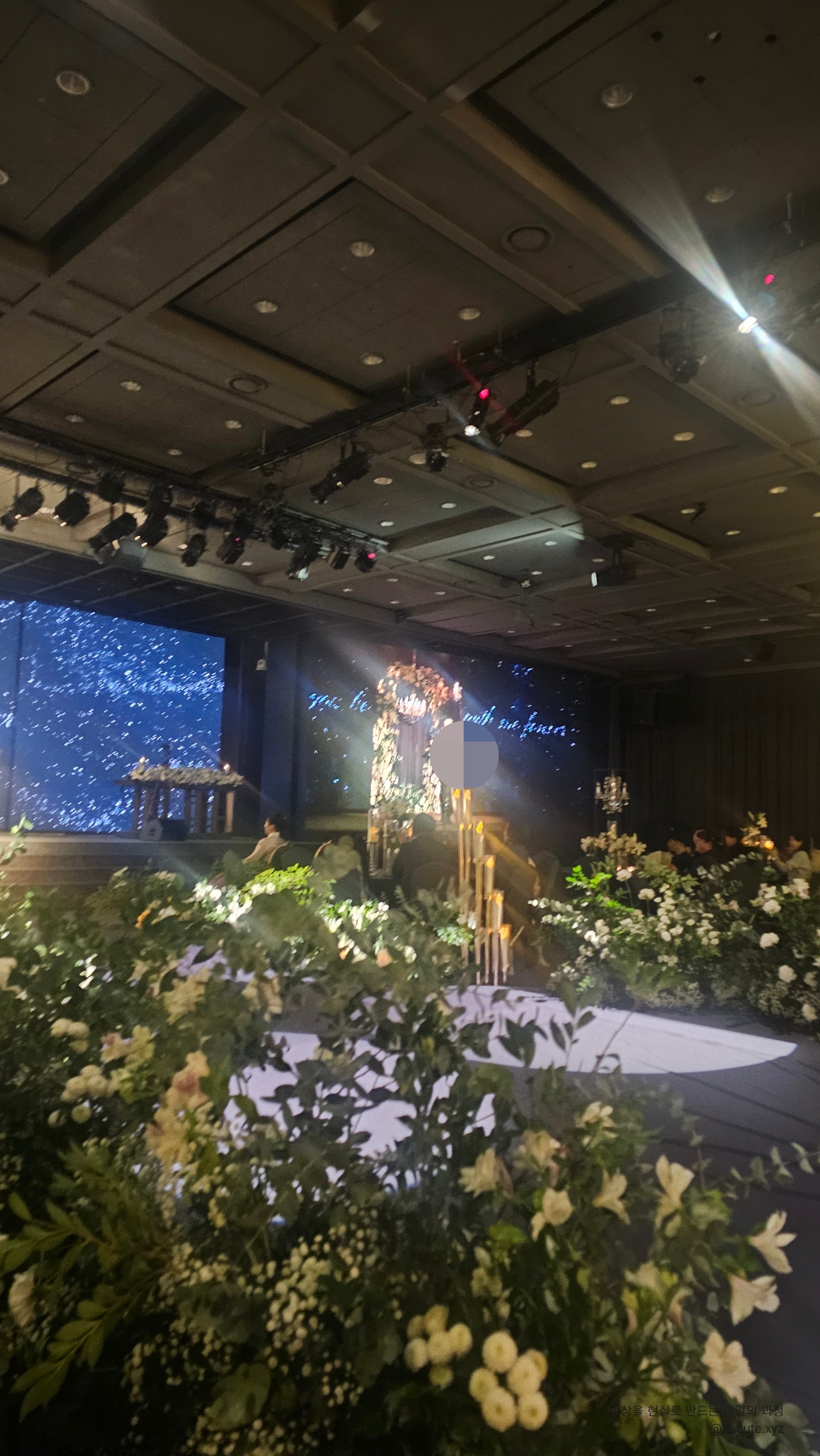 다 생화였는데 꽤 비쌀거 같은데 소박한것보단 화려함에 가까운 식장 인테리어