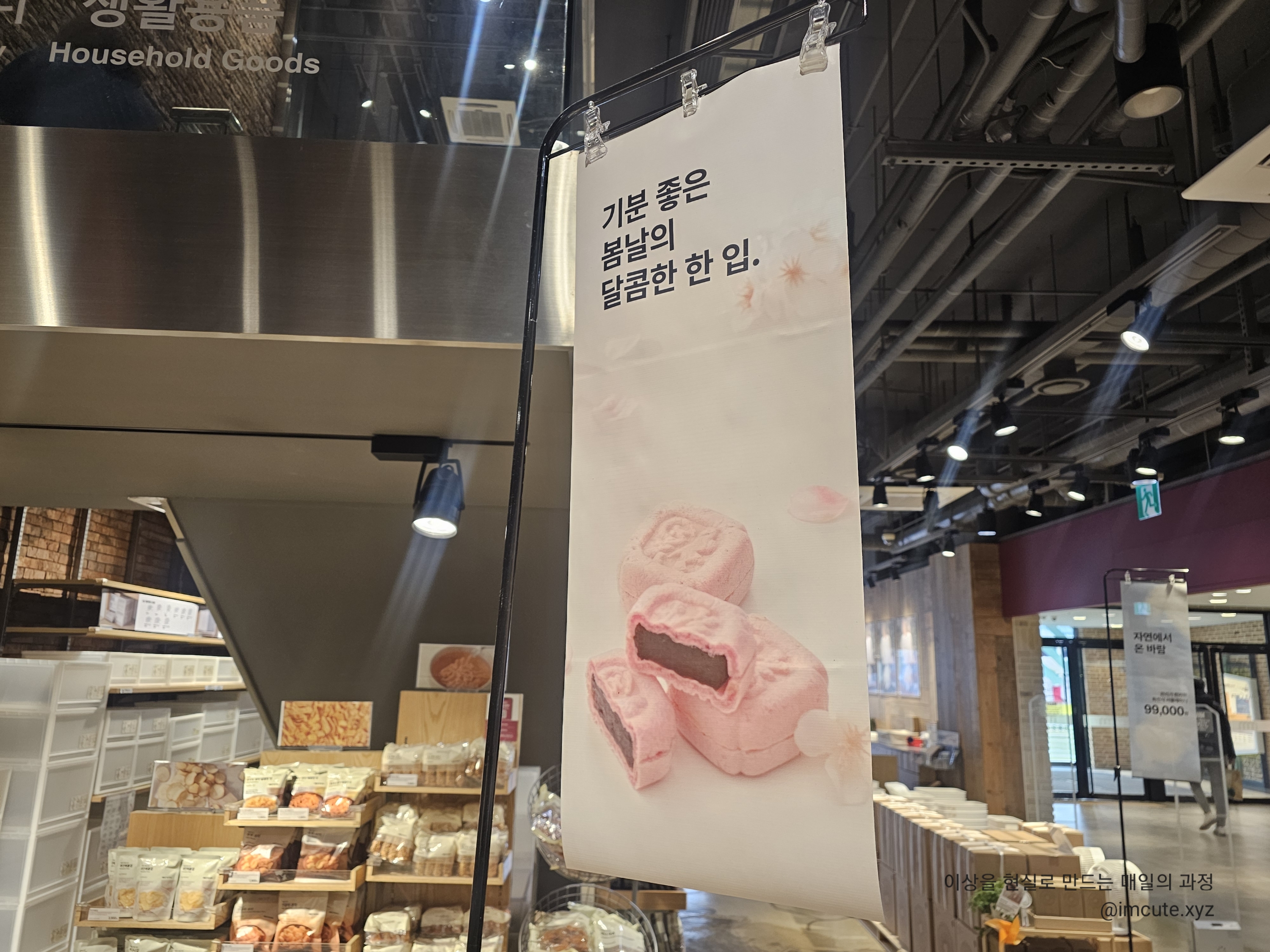 벚꽃 모나카 상품이 현수막으로 걸려있어요.ㅎㅎ