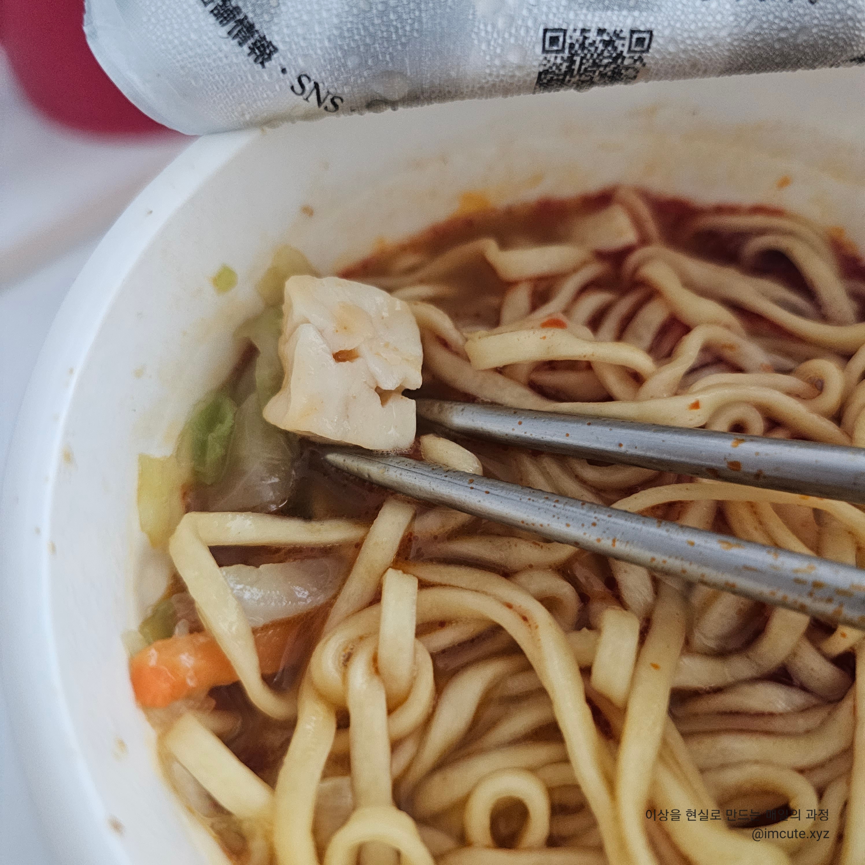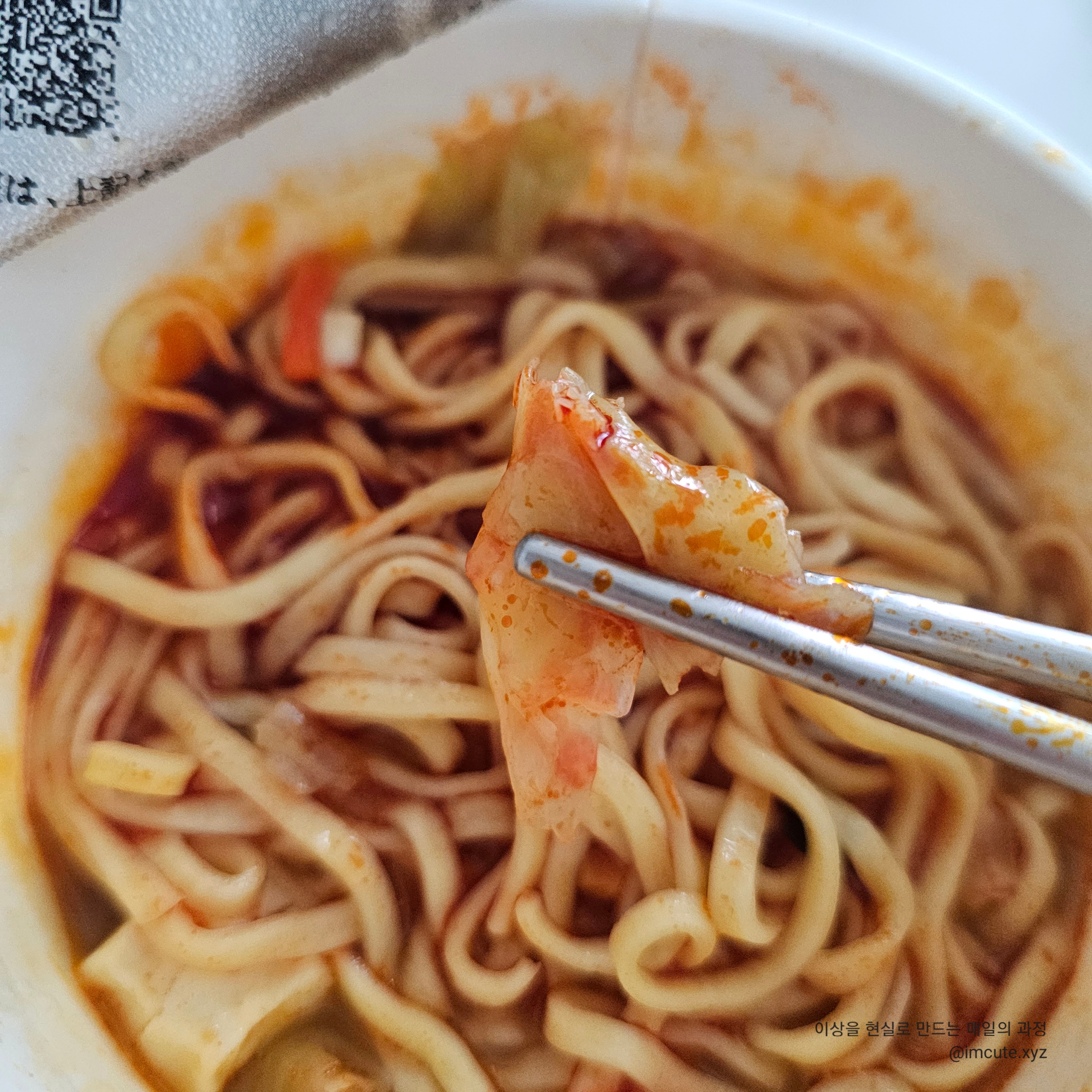 일본 컵라면 면발은 한국이랑 다르게 툭툭 끊어지는게