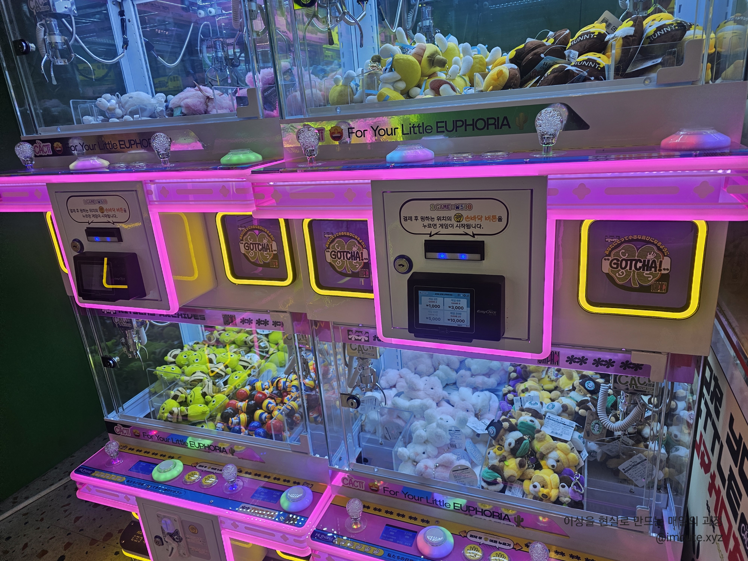 저는 작은인형뽑기를 좋아하는데 여기는 귀여운 작은인형뽑기가 많아요