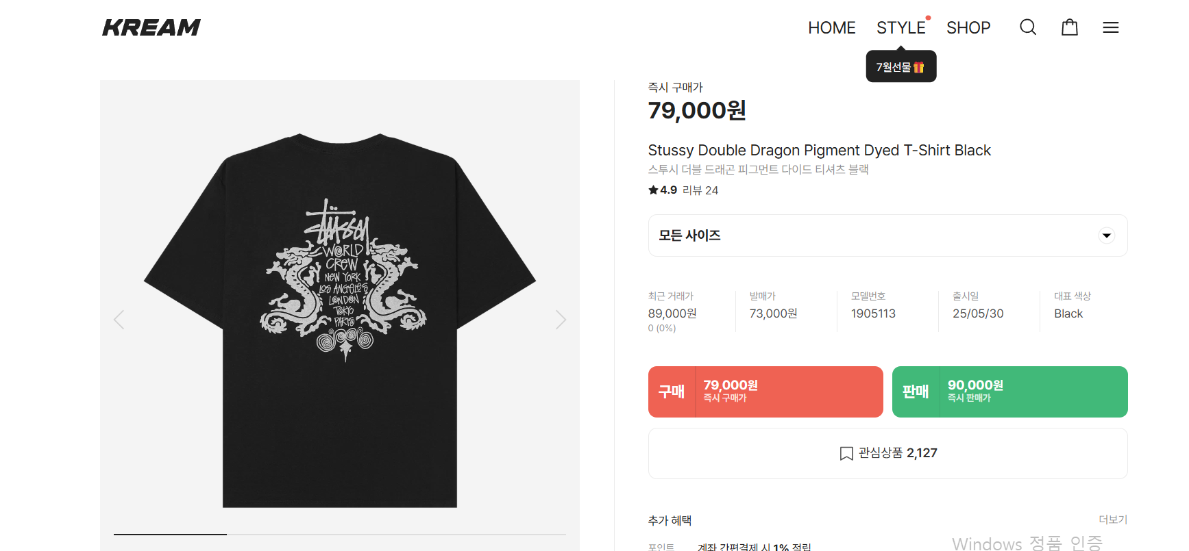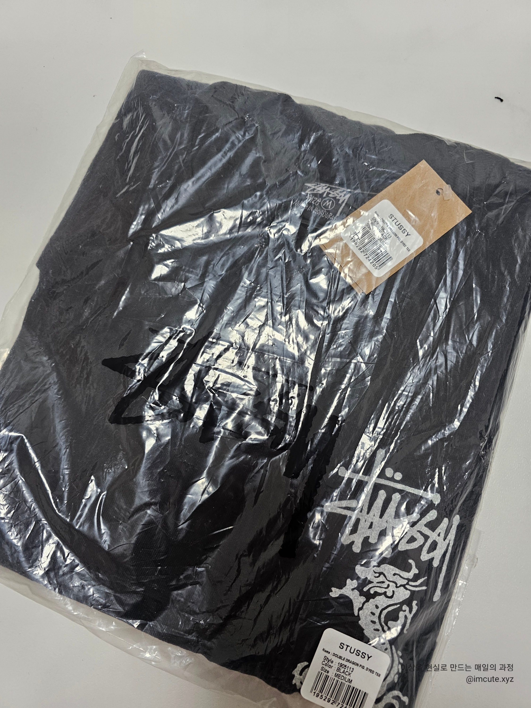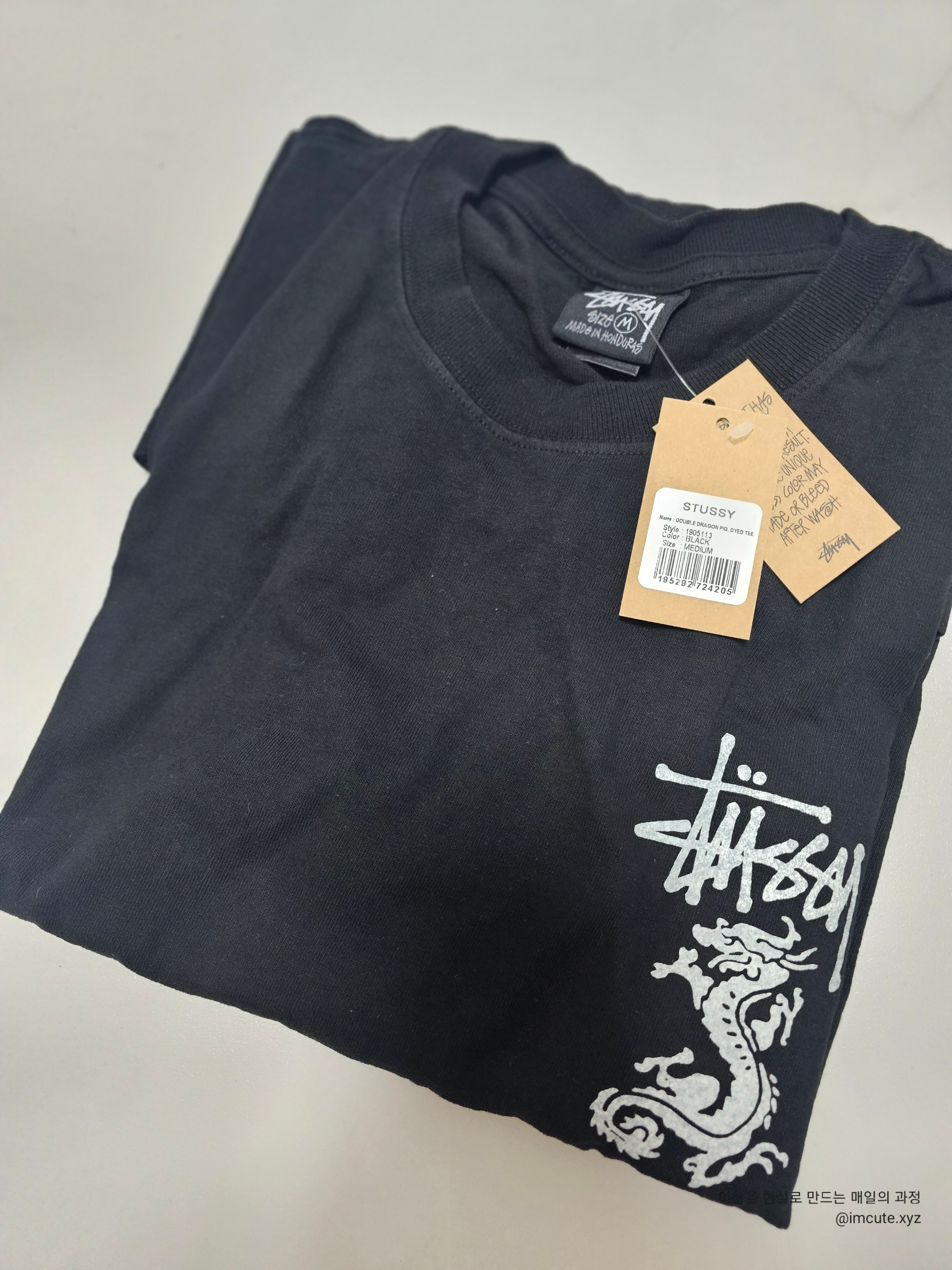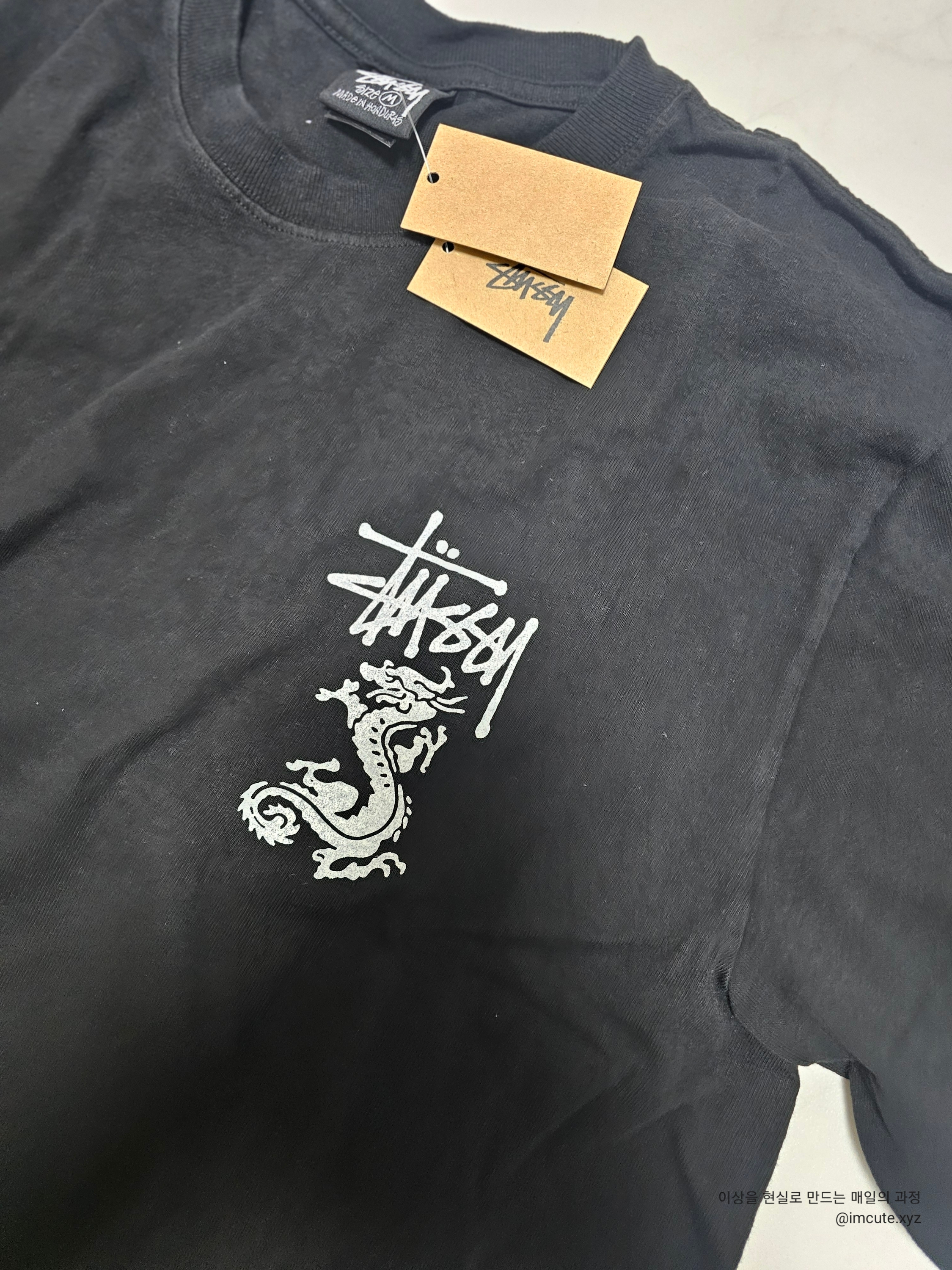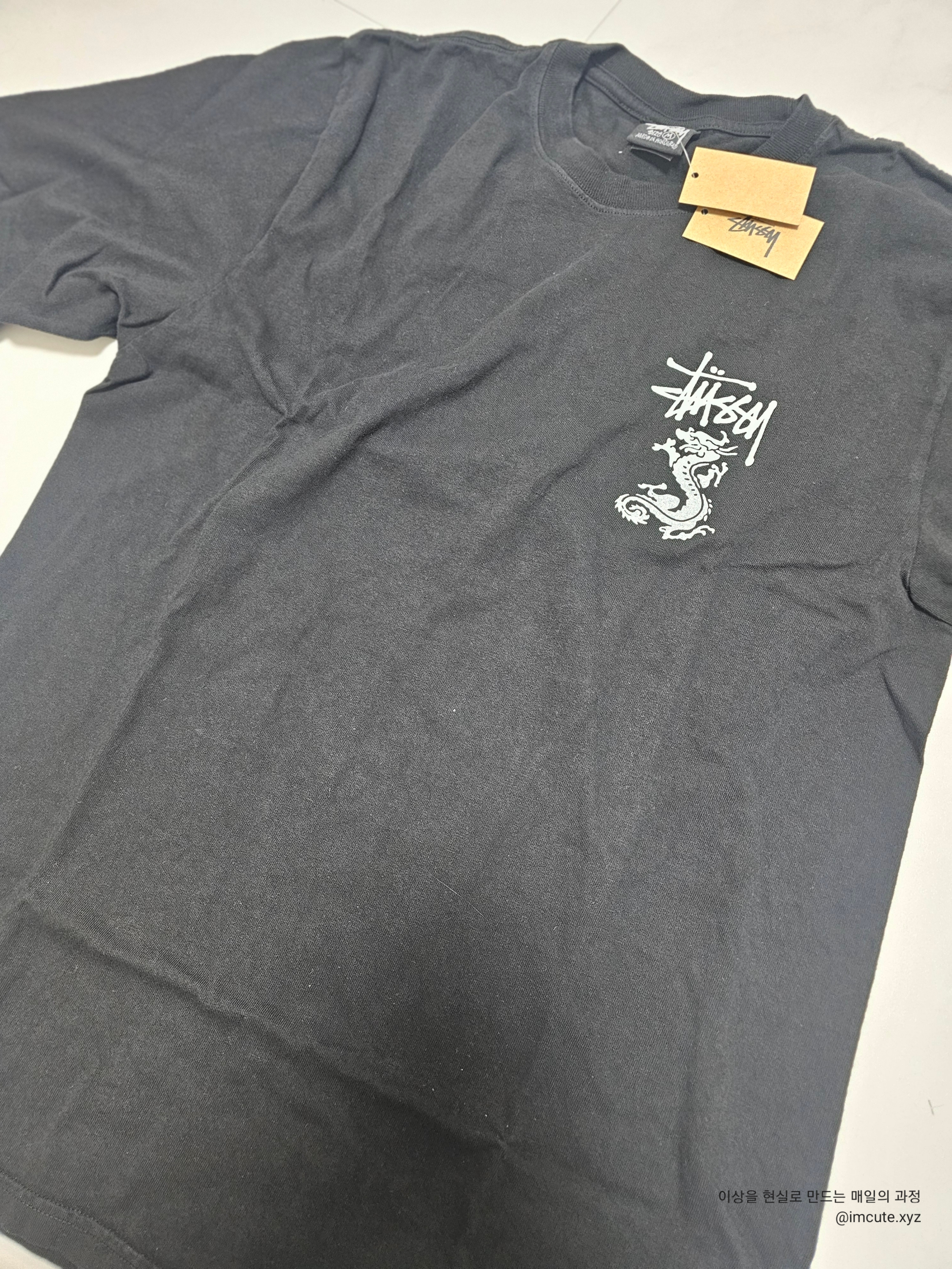 저는 용이 그려진 스투시 티셔츠를 구매했으며 사이즈는 미디움입니다!