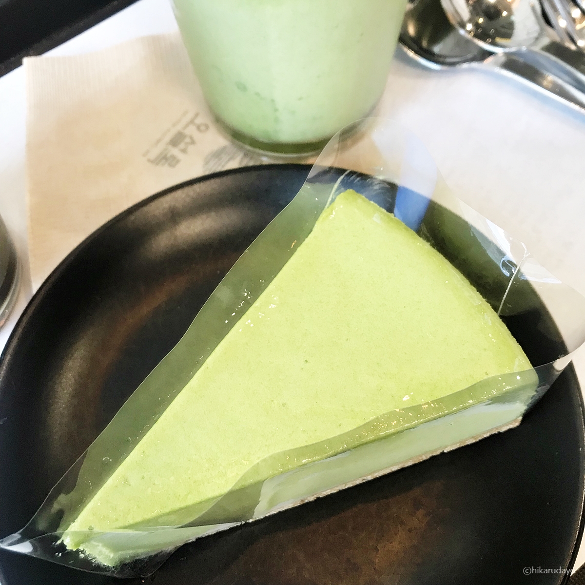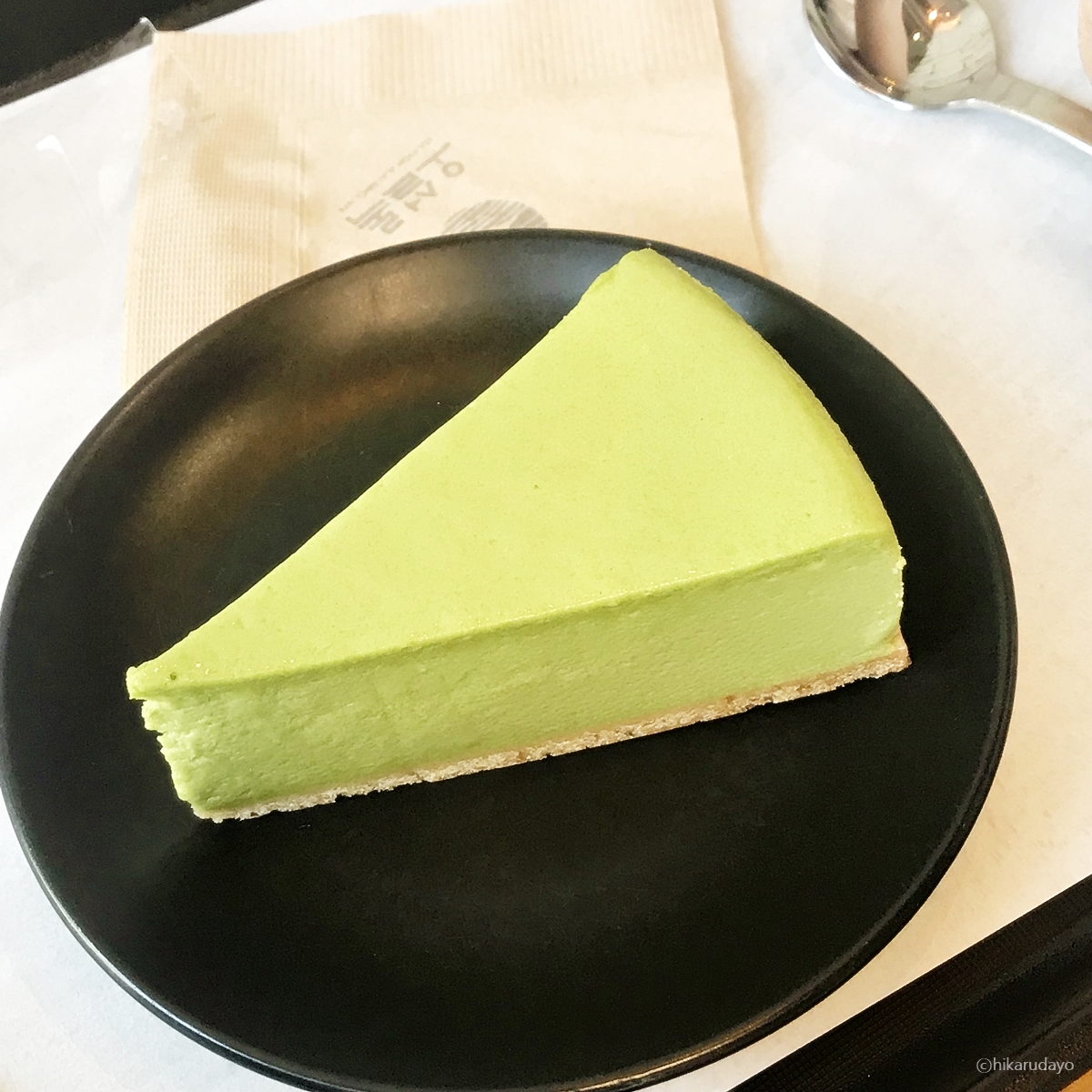 군더더기 없는 장식에 깔끔한 이 느낌! 저는 생일케익도 치즈케익으로 요청할 정도로 사람들에게 치즈를 사랑한다는 점을 어필하곤 하는데요 그런 치즈마니아인 제가 먹어도 매우 만족할 만한 그런 부드러움이었다고나 할까요. 치즈는 동물성 생크림이 주가 되어 아주 부드러웠고요. 떠먹어 보니, 건더기가 입 안에서 살살 녹는데 녹차의 깔끔함이 묻어 있더라고요.