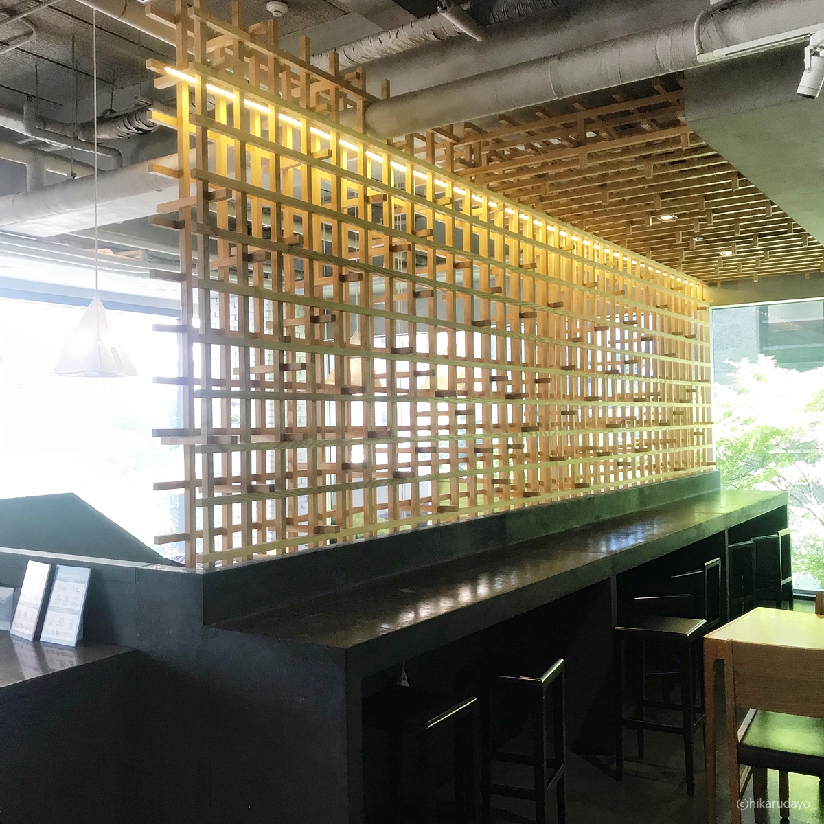 여럿이서 즐기는 분들도 있겠지만, 강남은 외로운 대도시 아닙니까. 현생에 치여 바쁘게 사는 영혼들이라면 누군가를 만나서 수다 떨 여유는 없다고 쳐도, 혼자서 차 마시는 것은 포기하지 못하겠지요. 그런 분들이 누구에게도 방해받지 않고 드실 수 있게끔, 개인석이 있네요. 1인석은 독서실이건 이런 카페에서건 요즘엔 절대 환영받는 분위기인거 같습니다. 그리고, 나무를 교차하여 오묘한 분위기를 뿜어내게끔 신선한 인테리어를 했는데요 동양미가 물씬 나지 않나요? 확실히 '오설록'이라는 카페취지에 적합한 인테리어였다고 볼 수 있겠습니다.