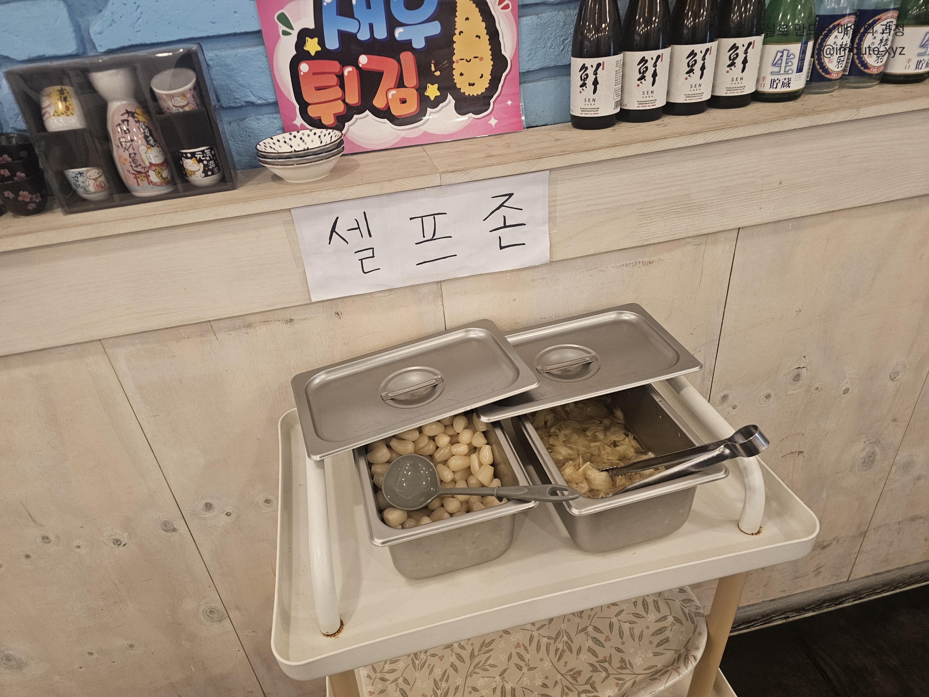 락교랑 생강조림은 셀프바에서 더 가져올 수 있습니다