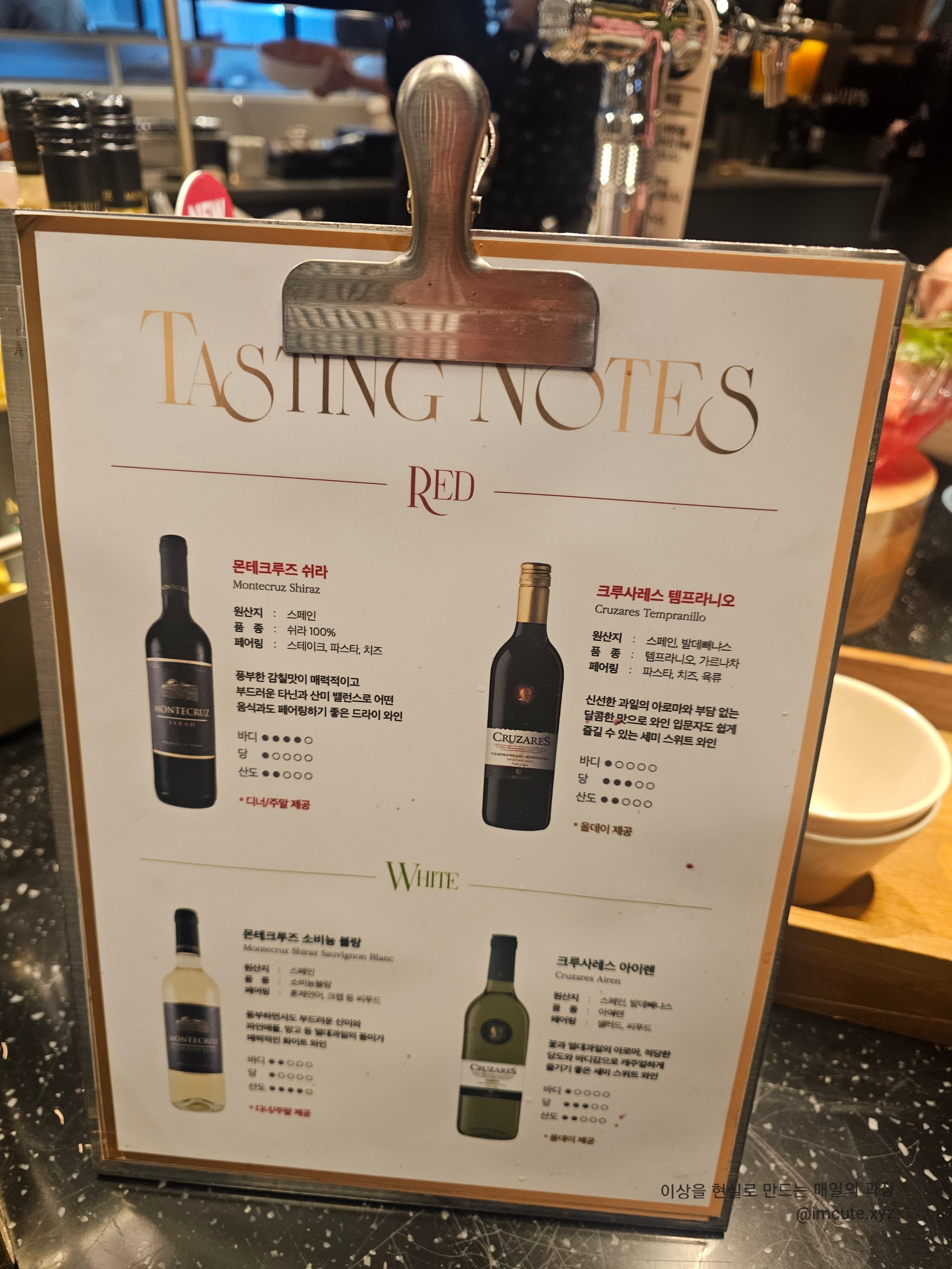 빕스 와인 종류는 몬테크루즈 쉬라, 크루사레스 템프라니오, 몬테크즈 소비뇽 블랑, 크루사레스 아이렌!!