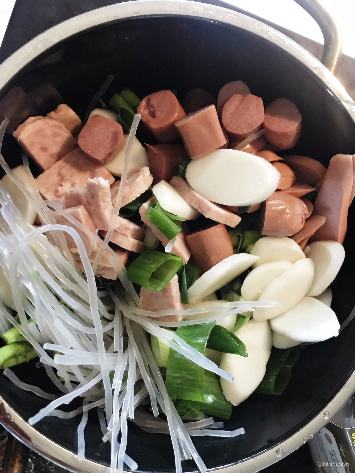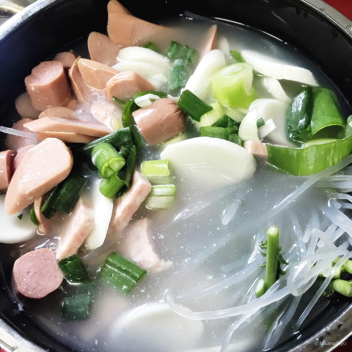 일산 부대찌개 맛집이 뭐 별거 있나, 라고 생각하실 수 있는데요 저는 일단 양을 중시하는 파라서요. 호오! 안에 떡국떡이라든지 여러가지 햄이 이쁘게 담겨져 있는 모습을 보니 괜시리 마음이 막 설레오더라고요. 또한, 당면은 이미 불려 놓았는지 바로 바르르 끓더니 풀어지더라고요.
