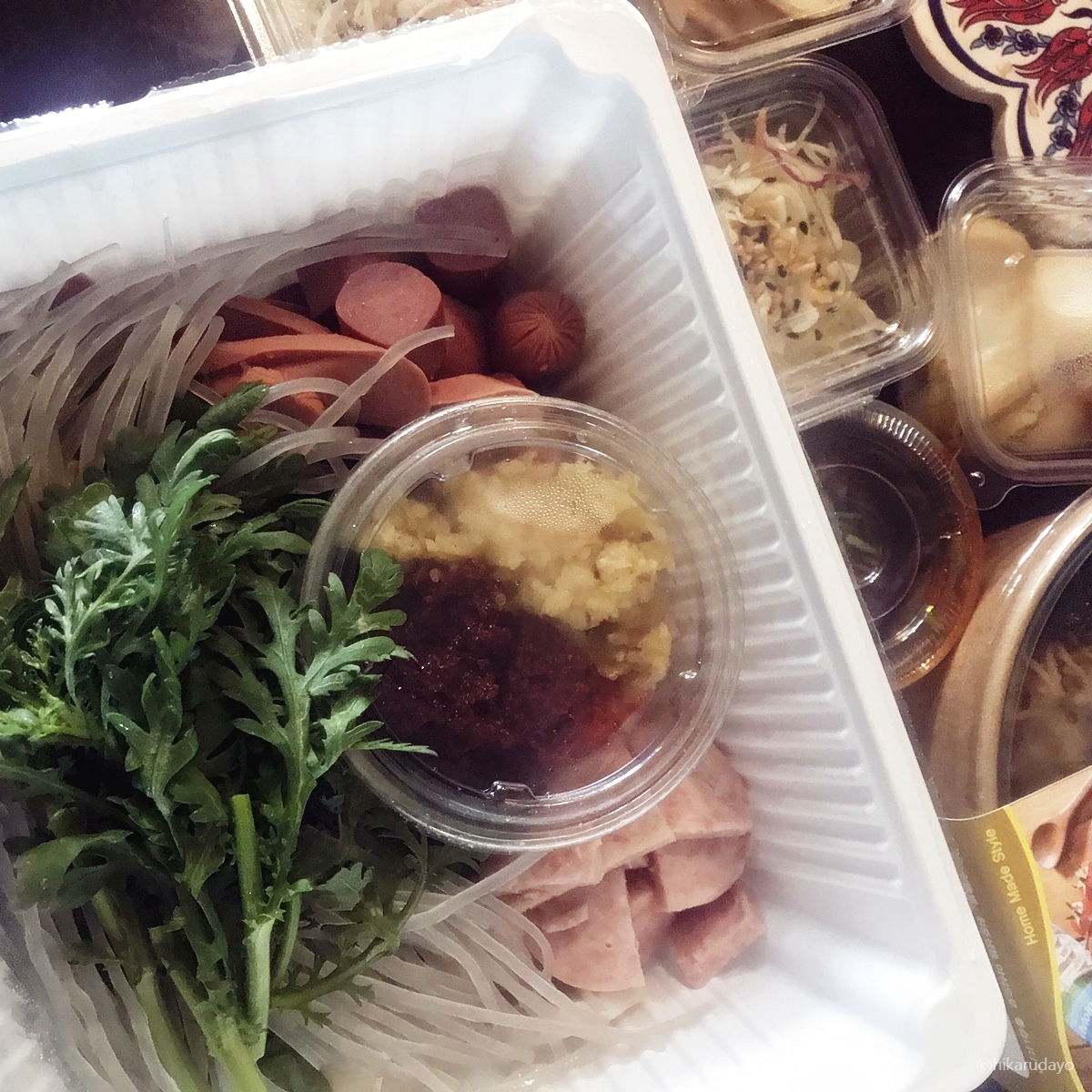 부대찌개를 포장해 온 모습입니다.
