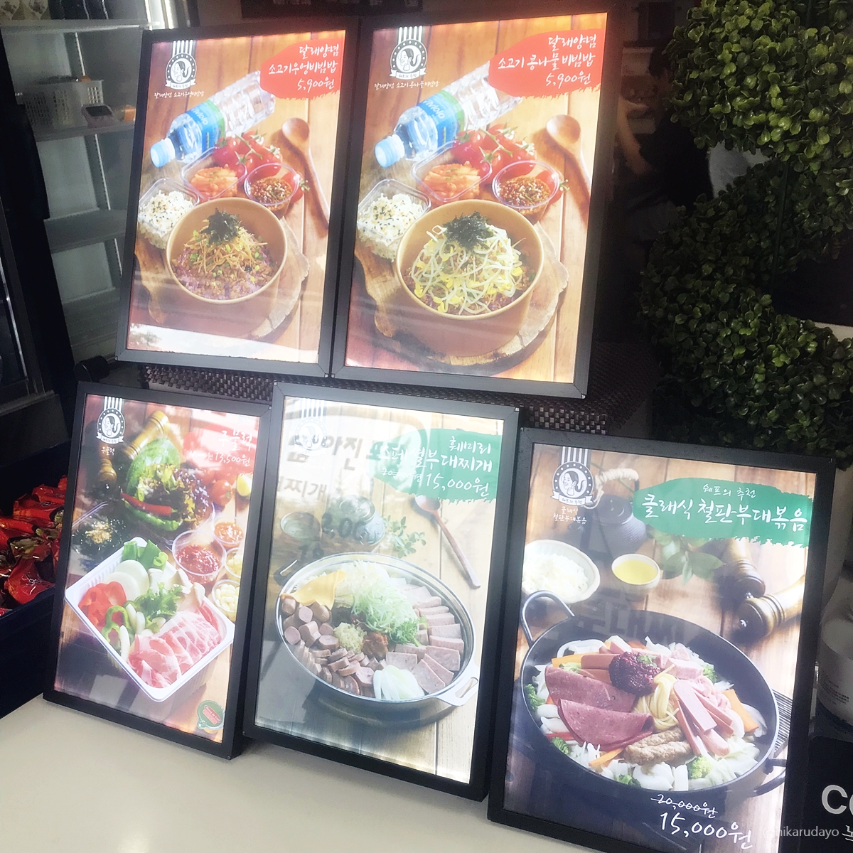 살짝 벽돌건물이라 운치있는데요, 진지한 글씨체로 부대찌개라고 써 있는 것을 보니 심히 배가 고파왔습니다. 저는 항상 무언가를 먹기 전에는 항상 공복을 유지하는데요, 어머니와 같이 가려고 시간을 맞춘 터라 살짝 기다리기 힘들었거든요. 가족들에게도 "오늘 부대찌개 먹을 거니까, 간식도 절대 먹지 말고 기다리고 있어!!"라고 하고 왔었는데, 그 보람이 있을 만큼 정말 양을 많이 주셨더라고요.