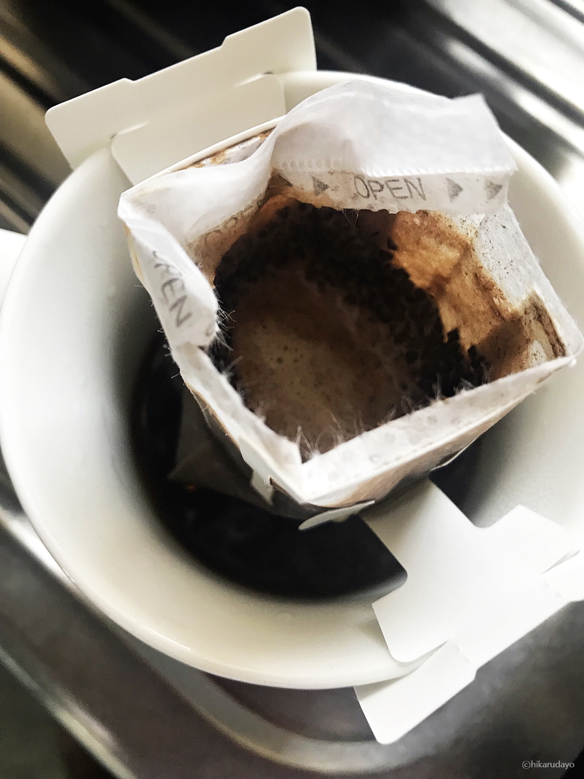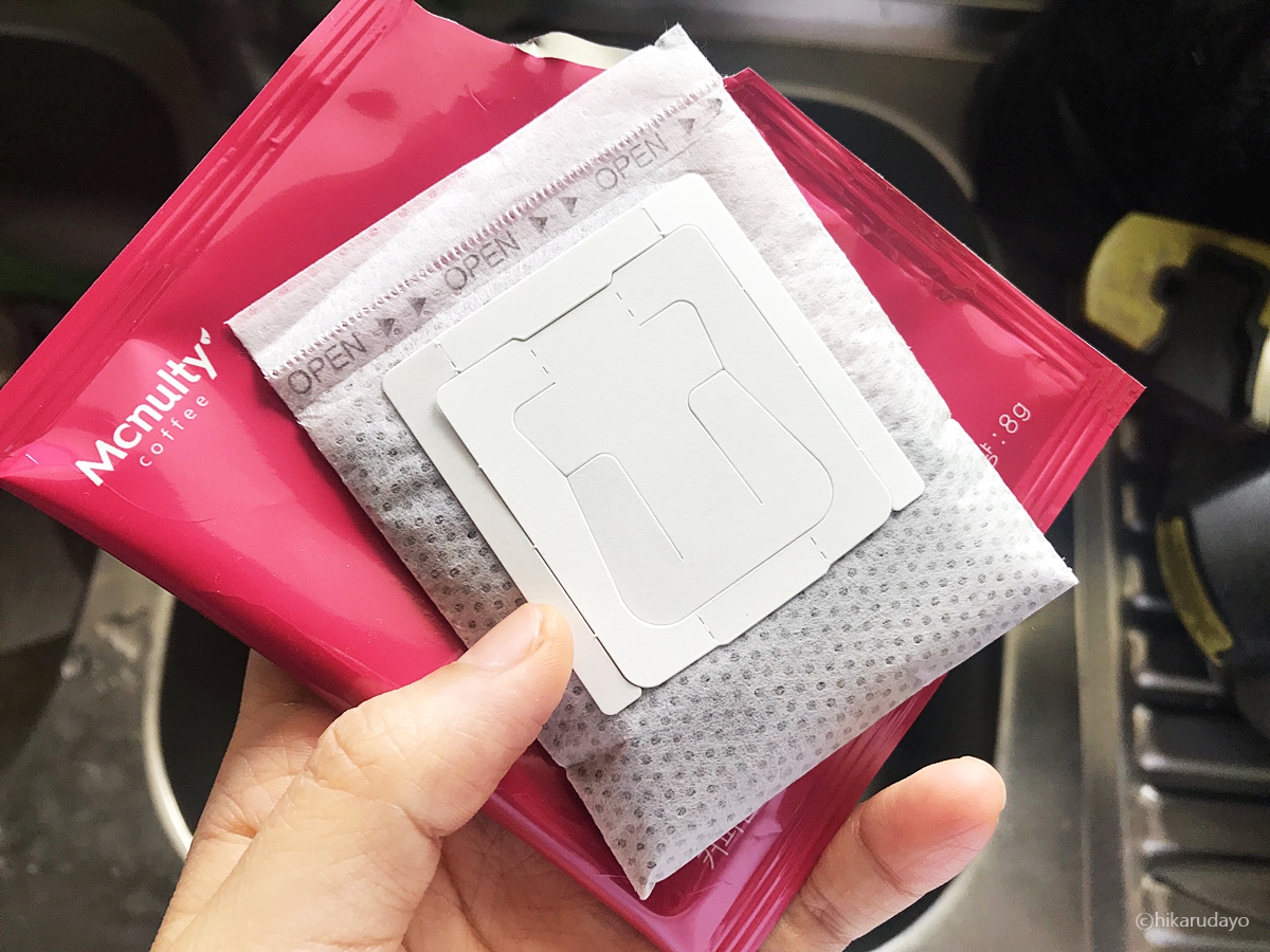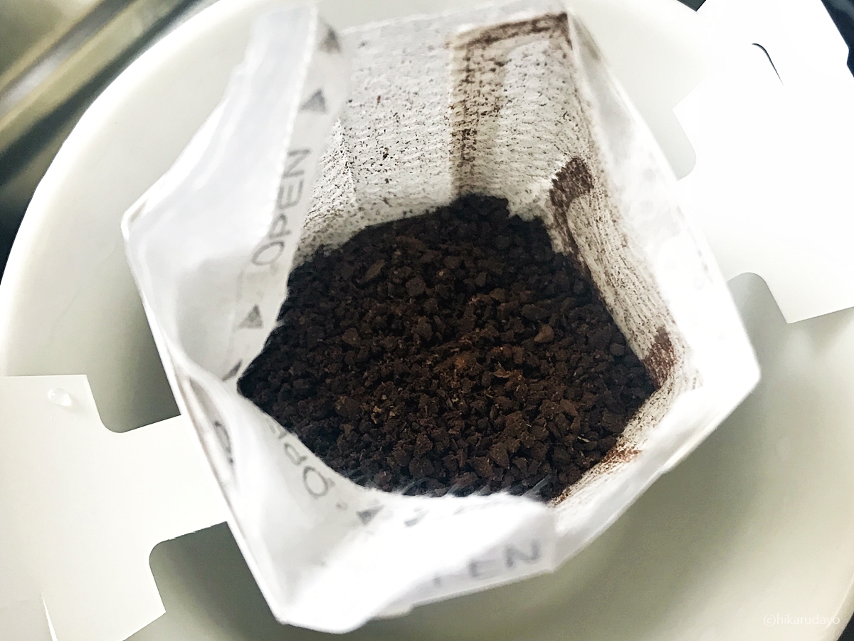 펼쳐서 원두 위에 바로 물을 붓는거에요, 그러면 우려져서 나온답니다. 후후 간단하죠?