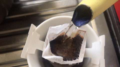 펼쳐서 원두 위에 바로 물을 붓는거에요, 그러면 우려져서 나온답니다. 후후 간단하죠?