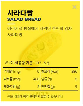 [빽다방 사라다빵 영양정보]