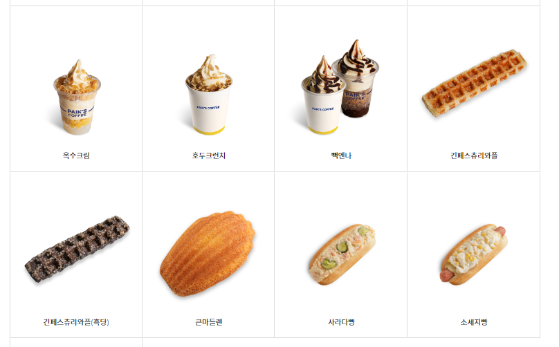 옥수크림, 호두 크런치, 빽엔나, 긴페스츄리 와플도 메뉴파넹서 보시다시피, 가공할 만한 비쥬얼을 뿜뿜 뽐내고 있었습니다.