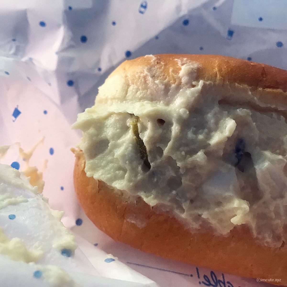 약간, 스테프 핫도그 그런 비주얼이 나는데요 빵은 촉촉하고 부드러운 편이랍니다. 한 손에 착 감기는 것이 기분도 좋게 만들어 주고요, 또 제가 빵을 원체 사랑해서 말이죠. 촤하하하
