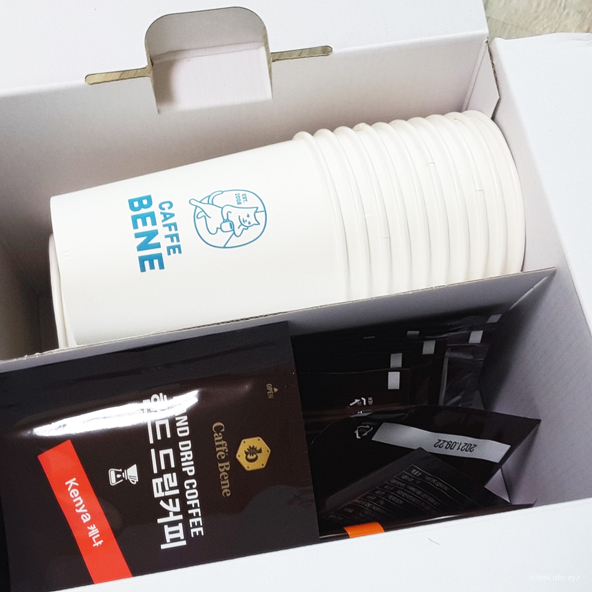 구성으로는 에티오피아 10개입, 케냐 10개입, 그리고 종이컵이 20개 들어 있습니다.