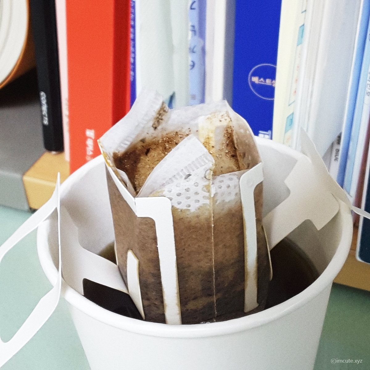 커피는 둥글둥글 돌려가며 물을 부으라 배웠습니다. 그리고 30초 쉬고 또 우려내고를 반복합니다. 그래야 커피의 풍미를 제대로 느낄 수가 있으니 말입니다. 종이가 컵에 절묘하게 타악 걸쳐지는데, 대체 이런 건 누가 발명했는지, 알다가도 모를 노릇입니다!!