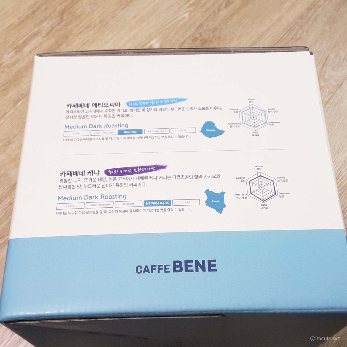 케냐는 붉은빛으로 제품처리가 되어있고 에티오피아는 노란색이네요. 근데 이게 대단한게, 실제로 케냐와 에티오피아의 국기 모양 가운데 색깔이 그렇습니다. 정말 센스 있네요. 혹시나 해서 검색을 다시 해 보았는데, 역시나입니다. 카페베네 디자인 하신 분들 센스가 아주 만발하시는 거 같습니다. 저같이 아이큐 높고 센스있는 사람 아니고서야 이런 거 누가 눈치 채겠습니까.ㄲㄲ 농담입니다.