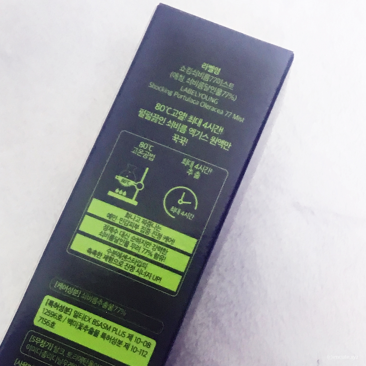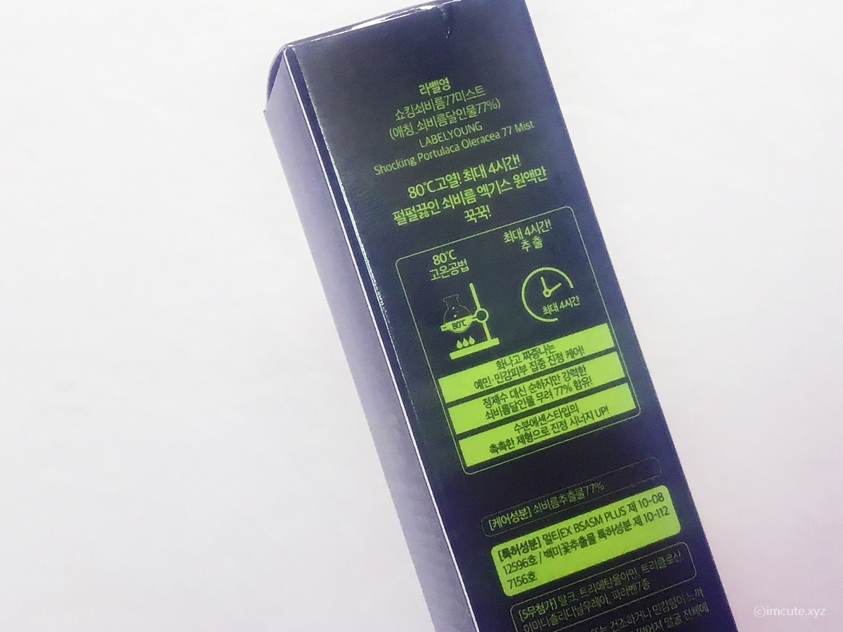 그냥 물이 아니라 쇠비름 달인물이 77%나 함유가 되었다는 요아이. 미스트를 참 멋지게 만들어 내었네요. 게다가 뭐라뭐라 특허성분까지 들어있다고 표기가 된거 보니까, 장인정신은 깃들어 있다고 생각이 들었어요.