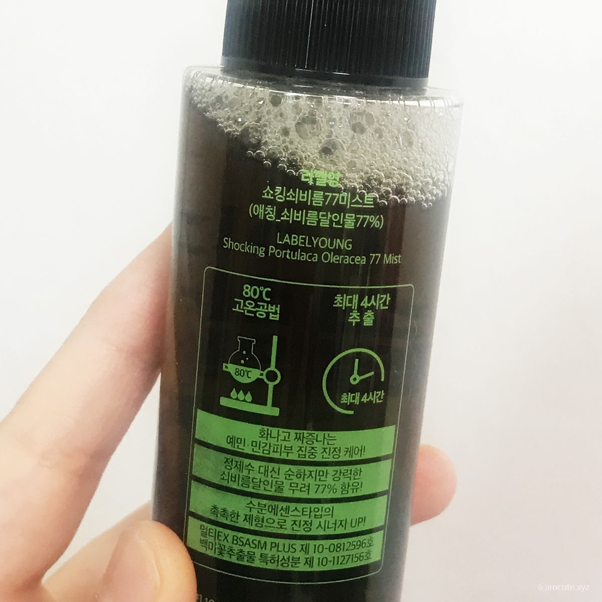 그냥 물이 아니라 쇠비름 달인물이 77%나 함유가 되었다는 요아이. 미스트를 참 멋지게 만들어 내었네요. 게다가 뭐라뭐라 특허성분까지 들어있다고 표기가 된거 보니까, 장인정신은 깃들어 있다고 생각이 들었어요.