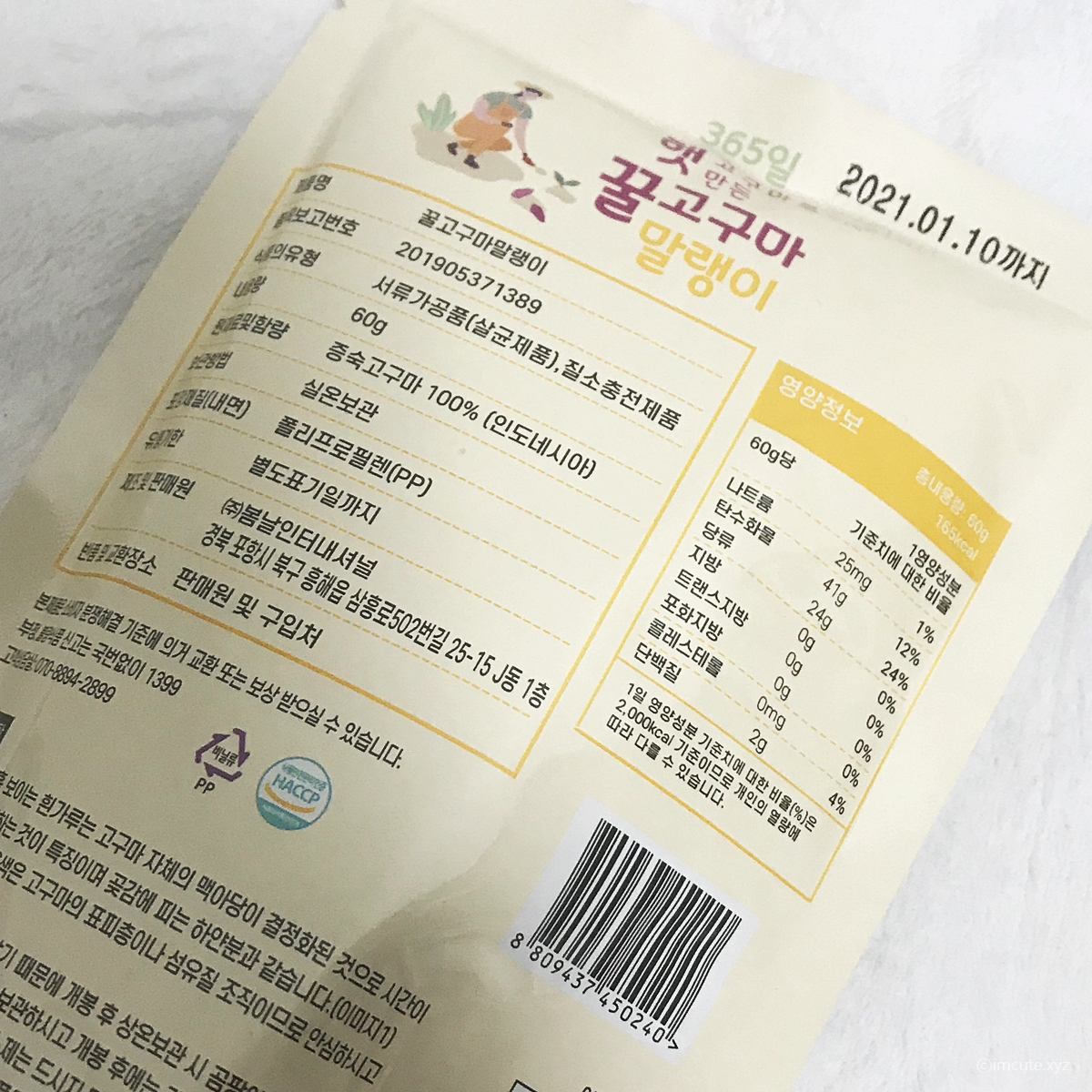 영양 정보가 뒤에 별도로 표기되어 있는데요, 특히 고구마는 소화가 잘 되니까 저같이 속이 더부룩한 사람한테 더욱 잘 맞을거 같단 생각이 들더라고요.