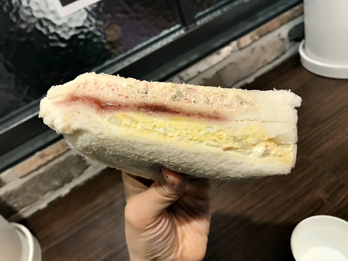 바깥에서 한끼 대충 할 때, 이렇게 제대로 된 끼니 할수 있는 요리가 샌드위치 빼고 또 뭐가 있겠습니까. 햄버거도 먹고 싶었지만 좀 너무 과한거 같더라고요~~ 그럴 땐 밥대신 탄수화물거리가 단연 샌드위치가 아닐까 해요. 안은 단짠의 정석으로다가, 딸기쨈과 감자샐러드 등이 들어있어서 얼마나 조화로운지 몰라요.