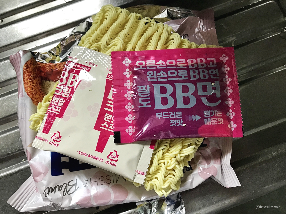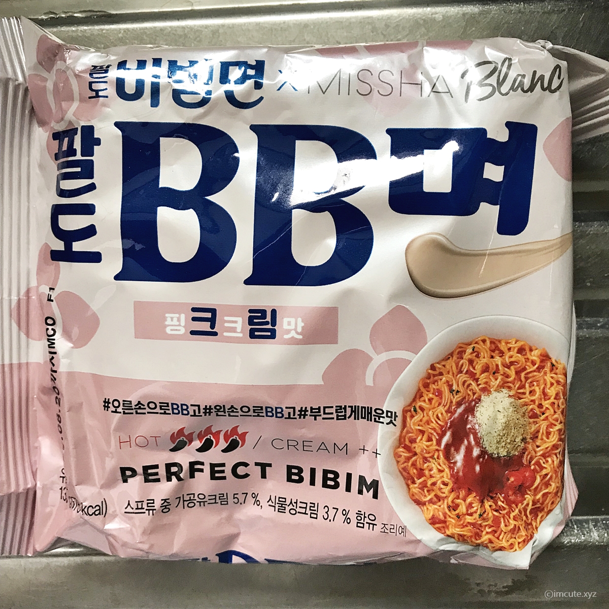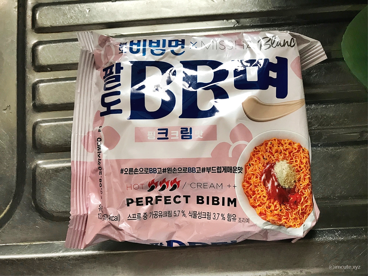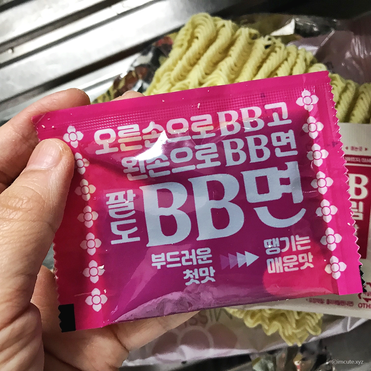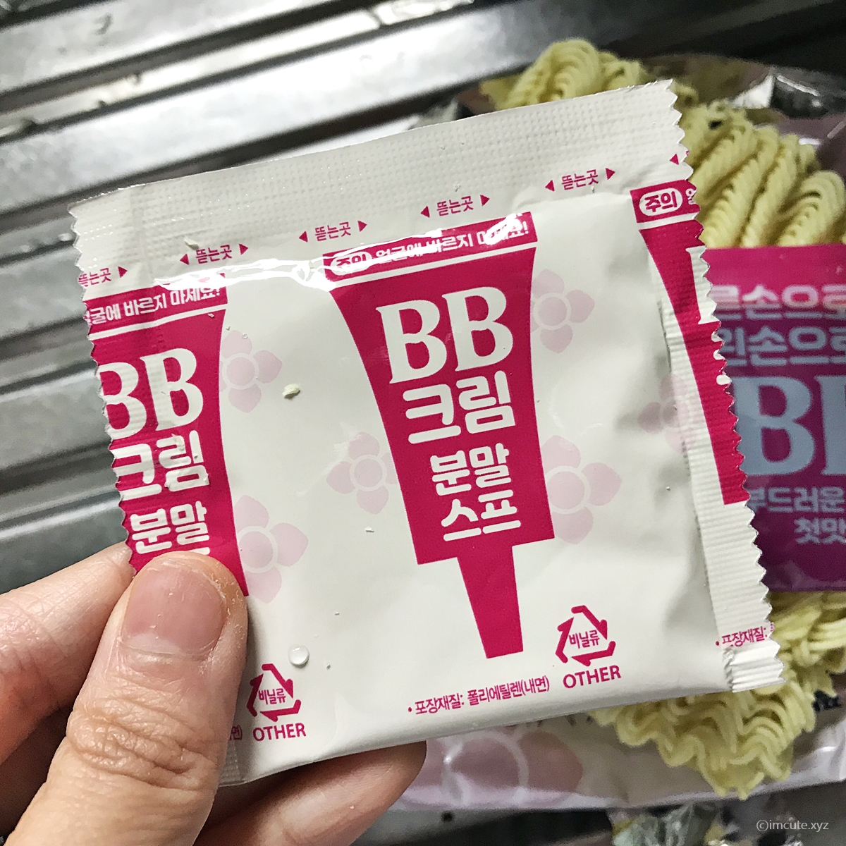 비빔면과 비비면, 비비탄 그런 모든것들이 연상이 되네요. BB크림같은 게 면의 ㄴ(니은)자에 그려져 있었어요. 실제로 화장품 회사 <미샤>랑 무슨 콜라보도 해서 제품을 출시했던데 놀랄 노자입니다.