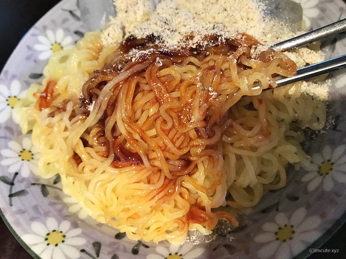 어라, 생소한 가루가 섞이니까 또 이게 신기하네요. 처음에 딱뿌리자마자 치즈의 향기가 나는 것이 저도 모르게 코를 큼큼거리게 되더이다. 저는 치즈의 고릿한 향취를 어렸을 때부터 무지 사랑했거든요. 뭔가 김치도 어릴 때부터 먹어본 자들만이 그 유산균 발효맛을 안다잖어요. 저는 치즈의 눅진한 그 향기가 너무 좋아
