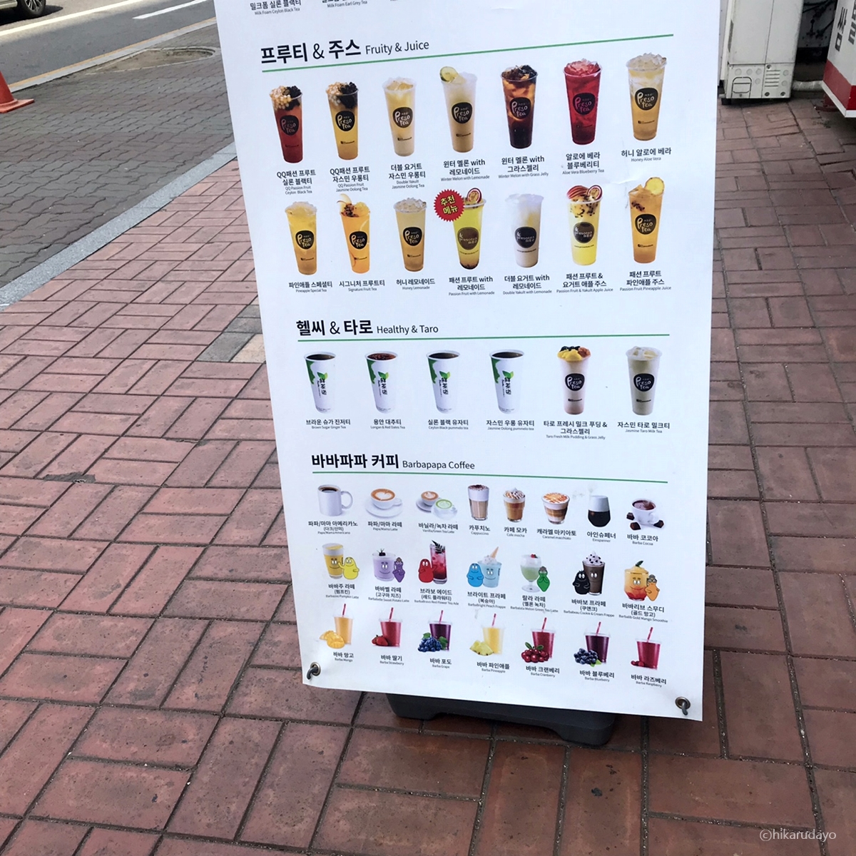 특이하게 바바파파 커피라는 메뉴도 있고 헬씨&타로라는것도 보인다. 파인애플, 시그니처 프루트티, 허니 레모네이드, 더블 요거트, 패션 흐루트가 들어가있는 것, 등등, 지금 이름을 나열하기에도 너무 많은것들이 있다. 브라운 슈가 진저티, 유자티, ....크랜베리에 블루베리, 라즈베리...(....)