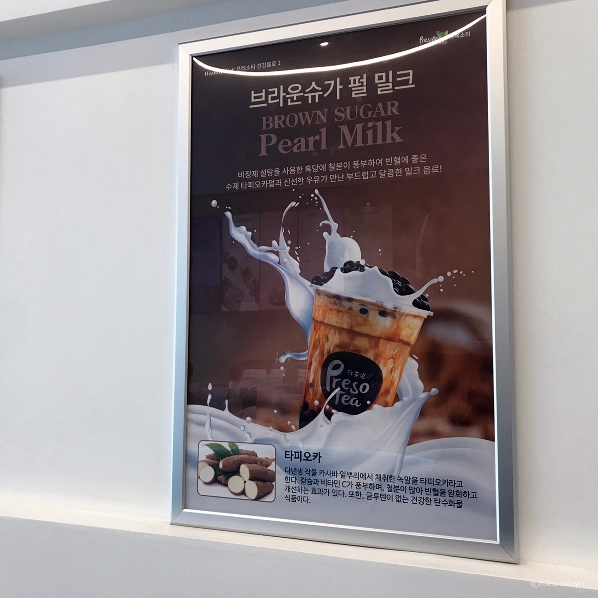 일산 밀크티 전문점 프레소티에서는 브라운 슈가 타로 밀크, 브라운 슈가 펄 밀크, 흑당 펄 블랙티, 흑당 펄 스모키 등이 보인다. 대만에 가면 꼭 가봐야 할 밀크티 맛집이라는데 나는 어디서 먹어본것도 같고 아닌것도 같고~~ 뭐 요즘엔 이런저런 체인점이 많으니 궁금하긴 했다.